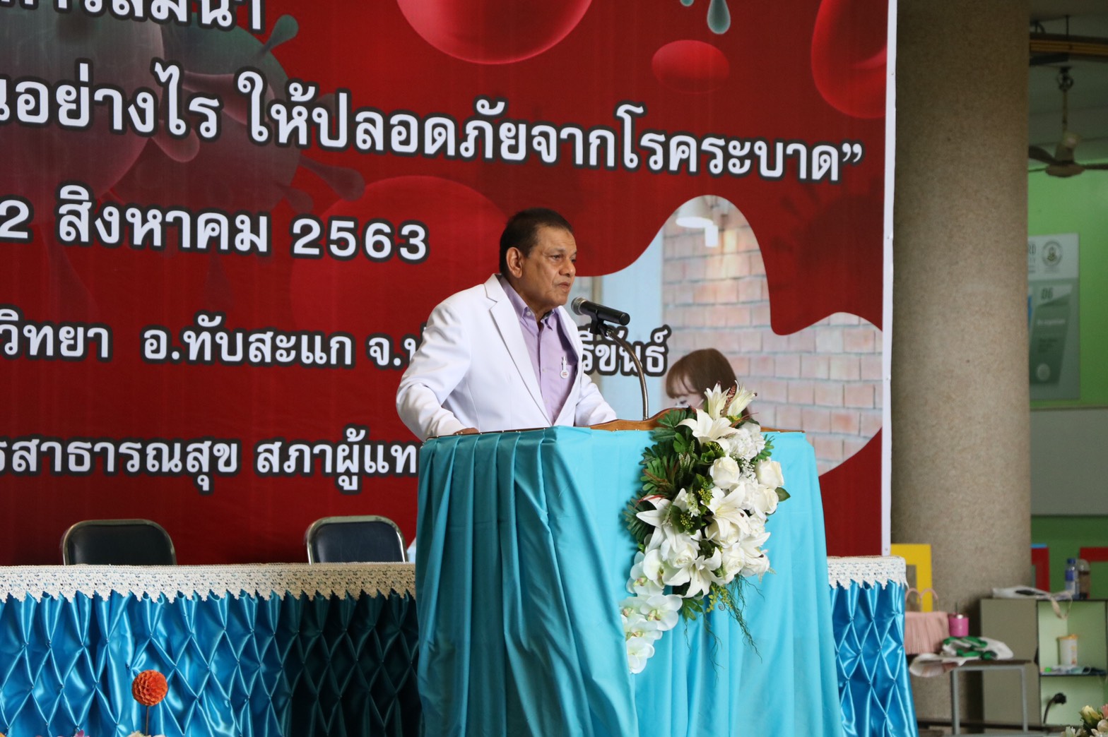 โดยมี นางจันทิรา โกมล หัวหน้างานควบคุมโรค สสจ.ประจวบคีรีขันธ์ ตัวแทนนายแพทย์สุริยะ คูหะรัตน์ นายแพทย์ สสจ.ประจวบคีรีขันธ์ นายปรีดา สุดใจ นายอำเภอทับสะแก นายเชิดชาย สุธรรมรักษ์ สาธารณสุขอำเภอทับสะแก แพทย์หญิงสุภาพรภมรสูตร ผู้อำนวยการโรงพยาบาลทับสะแก นายพงษ์พันธุ์ เผ่าประธาน นายกเทศมนตรีตำบลทับสะแก พร้อม อสม.อำเภอทับสะแก เข้าร่วมสัมมนากว่า 600 คน