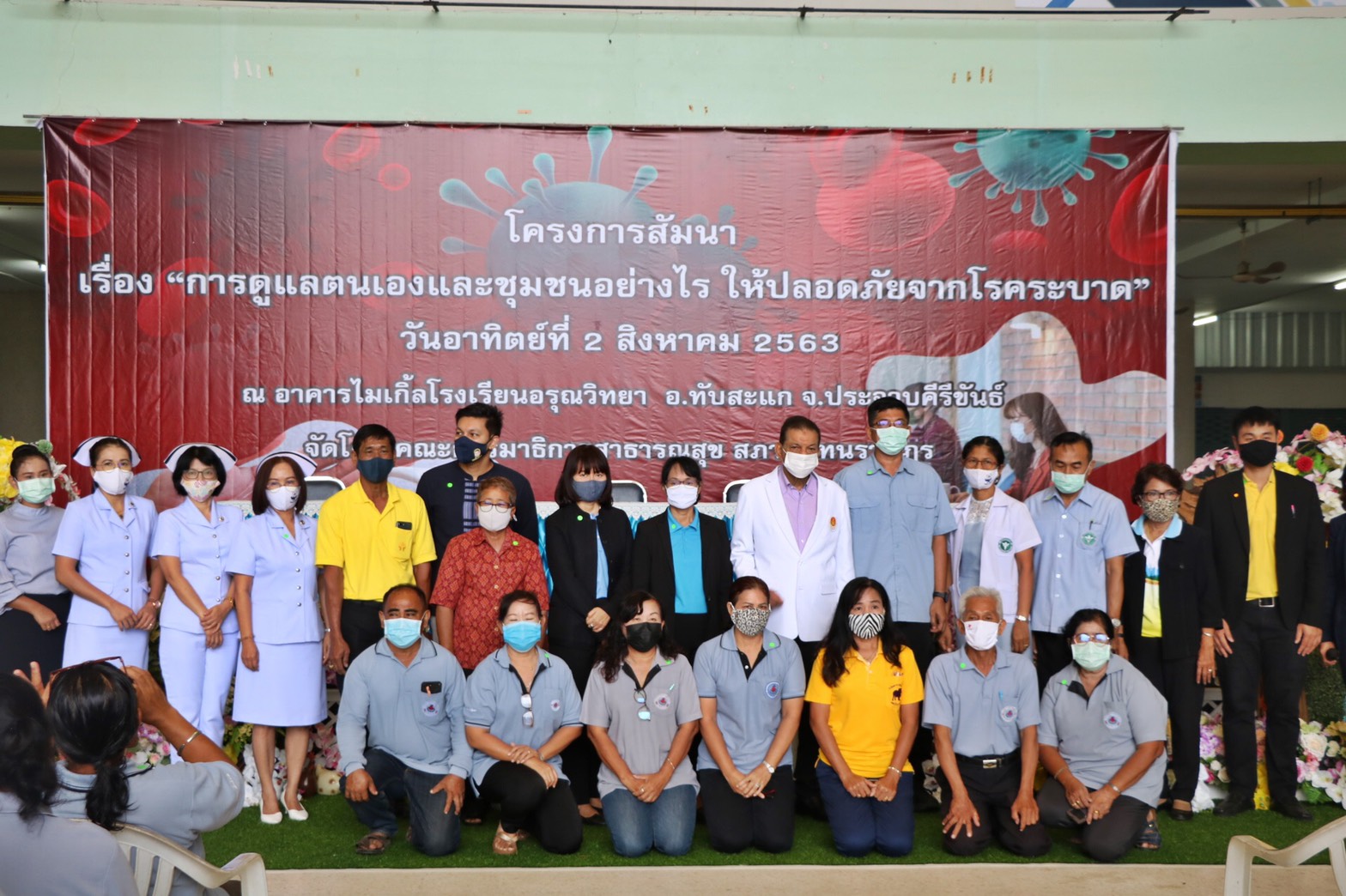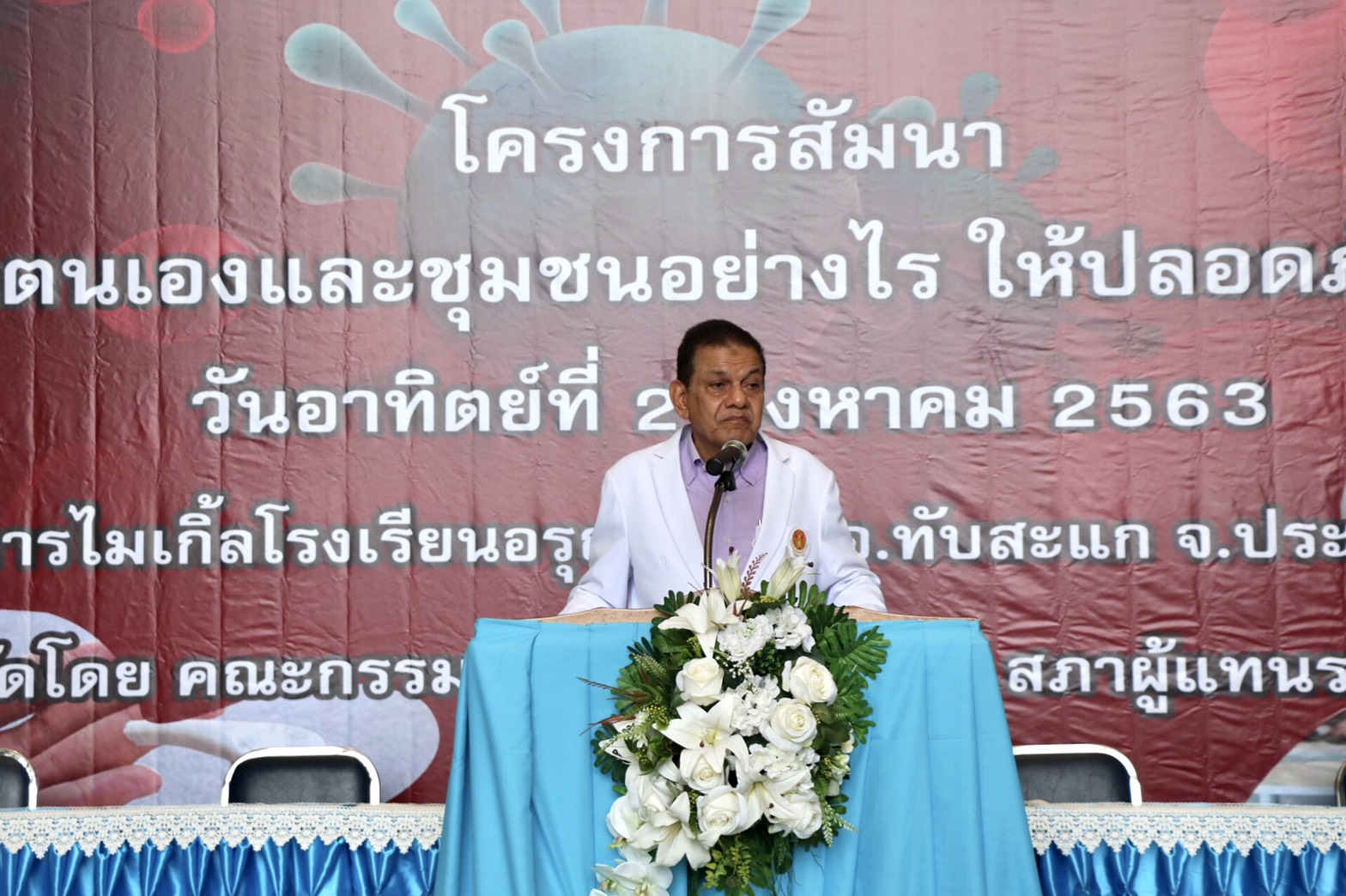 วันที่ 2 สิงหาคม 63 ที่โรงเรียนอรุณวิทยา ตำบลแสงอรุณ อำเภอทับสะแก จังหวัดประจวบคีรีขันธ์ นายสวาป เผ่าประทาน สส.ระบบบัญชีรายชื่อพรรคภูมิใจไทย ในฐานะประธานที่ปรึกษาคณะกรรมาธิการการสาธารณสุขสภาผู้แทนราษฎร ได้ให้เกียรติเป็นประธานในพิธีเปิดการสัมมนาให้ความรู้เรื่องการดูแลตนเองและชุมชนอย่างไรให้ปลอดภัยจากโรคระบาด