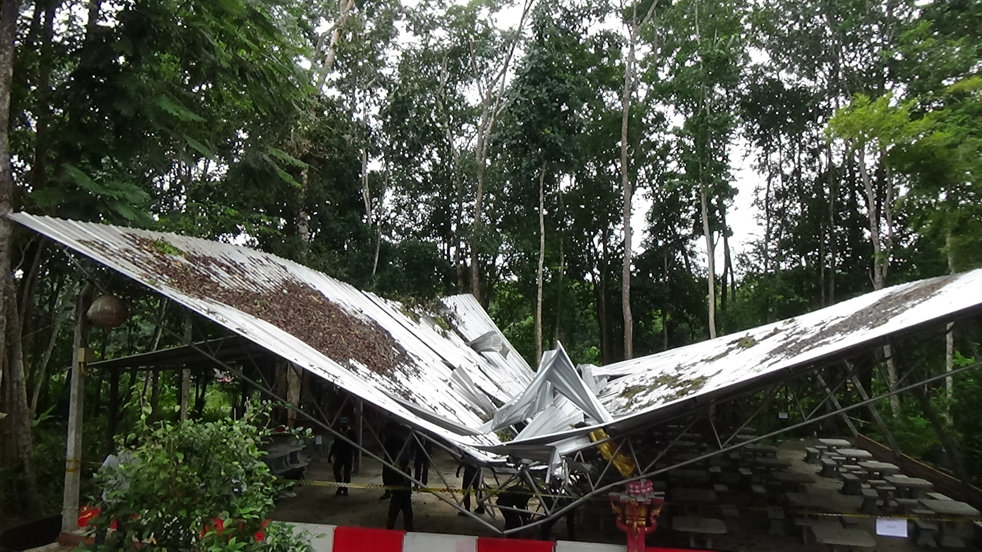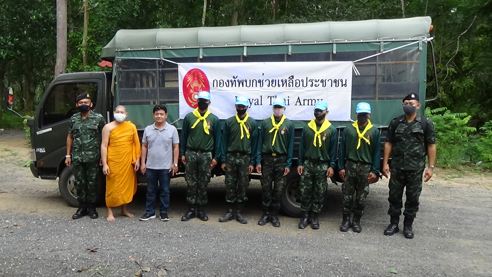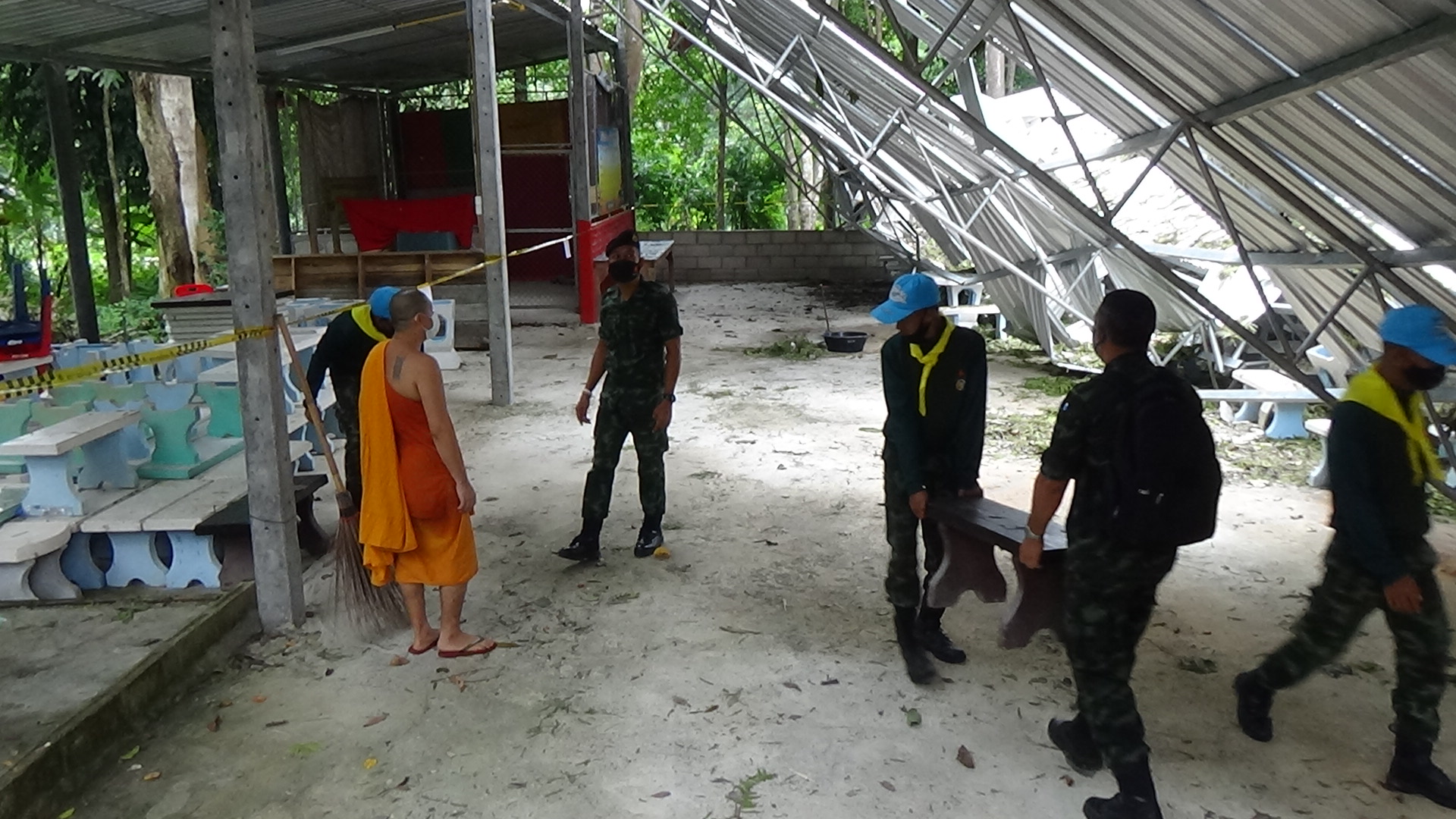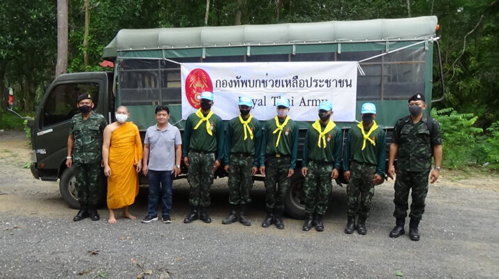 จิตอาสากองพันทหารราบที่ 4 กรมทหารราบที่ 15 ค่ายพระยารัษฎานุประดิษฐ์ อำเภอห้วยยอด จังหวัดตรัง ออกสำรวจความเสียหายจากลมพายุพัดสร้างความเสียหายให้กับสำนักปฏิบัติธรรม โดยการขนย้ายสิ่งของ และเตรียมร่วมกับชาวบ้านในรื้อหลังคาที่พังออกแล้งซ่อมแซมใหม่