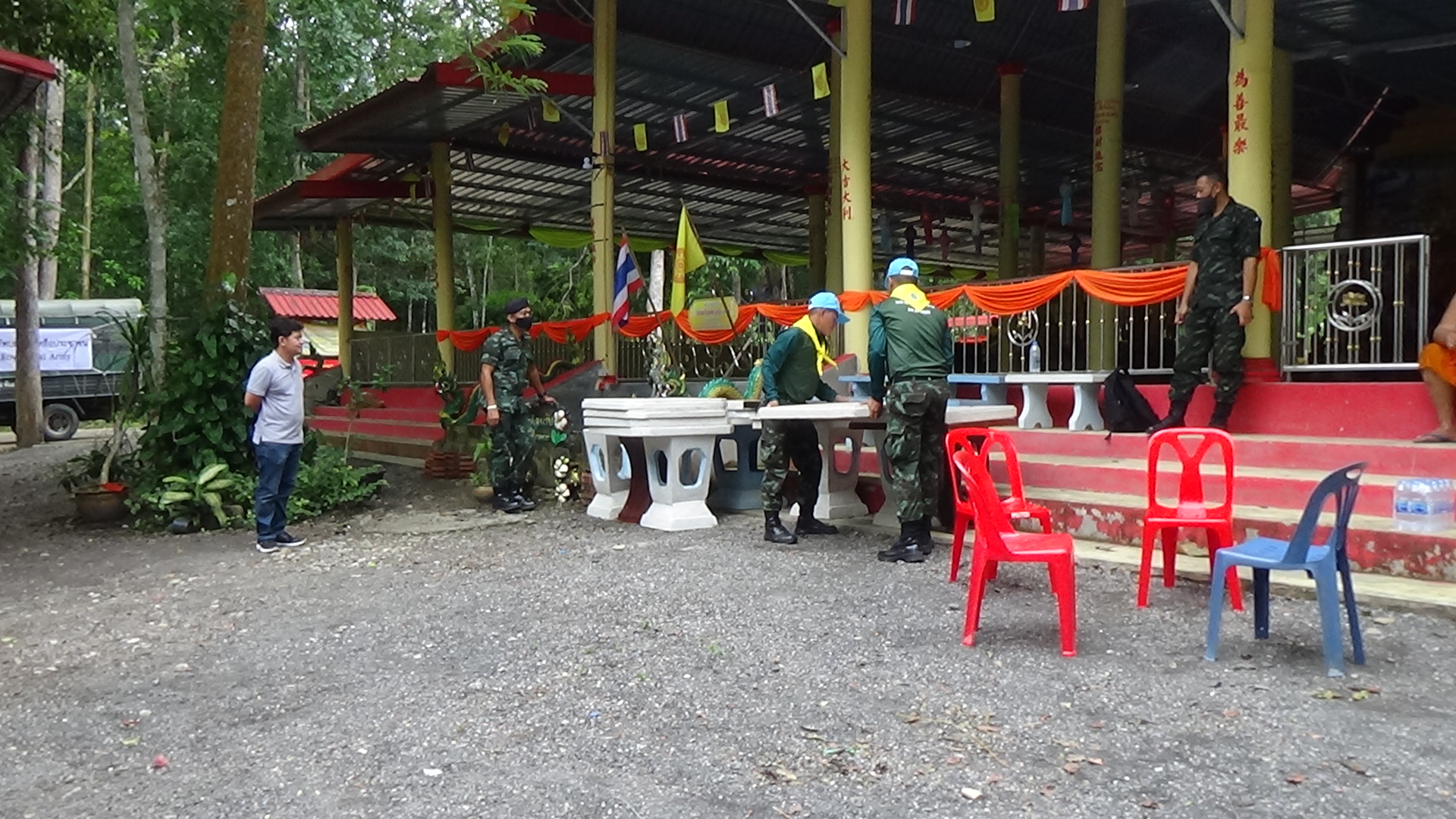 ในวันนี้ทางจิตอาสากองพันทหารราบที่ 4 กรมทหารราบที่ 15 ค่ายพระยารัษฎานุประดิษฐ์ ได้สำรวจ และเคลื่อนย้ายโต๊ะม้าหินออกบางส่วนก่อน และในวันที่ 10 สิ่งหาคมที่จะถึงนี้จะร่วมกับชาวล้านและผู้นำชุมชนในพื้นที่ ทำการรื้อโครงหลังคาออกทั้งหมดและจะทำการก่อสร้างขึ้นมาทดแทนของเดิมที่พังเสียหาย สำหรับค่าใช้จ่ายในการดำเนินการรื้อถอนและก่อสร้างใหม่นั้นนั้นทางวัดจะร่วมกับประชาชนช่วยกันออกทุนทรัพย์ เนื่องจากสำนักปฏิบัติธรรมนั้นยังไม่ได้เป็นวัดจึงไม่ได้รับเงินสนับสนุนจากสำนักงานพุทธศาสนา แต่อย่างใด จึงต้องร่วมด้วยช่วยกันบริจาคในการซ่อมแซมปรับปรุงใหม่