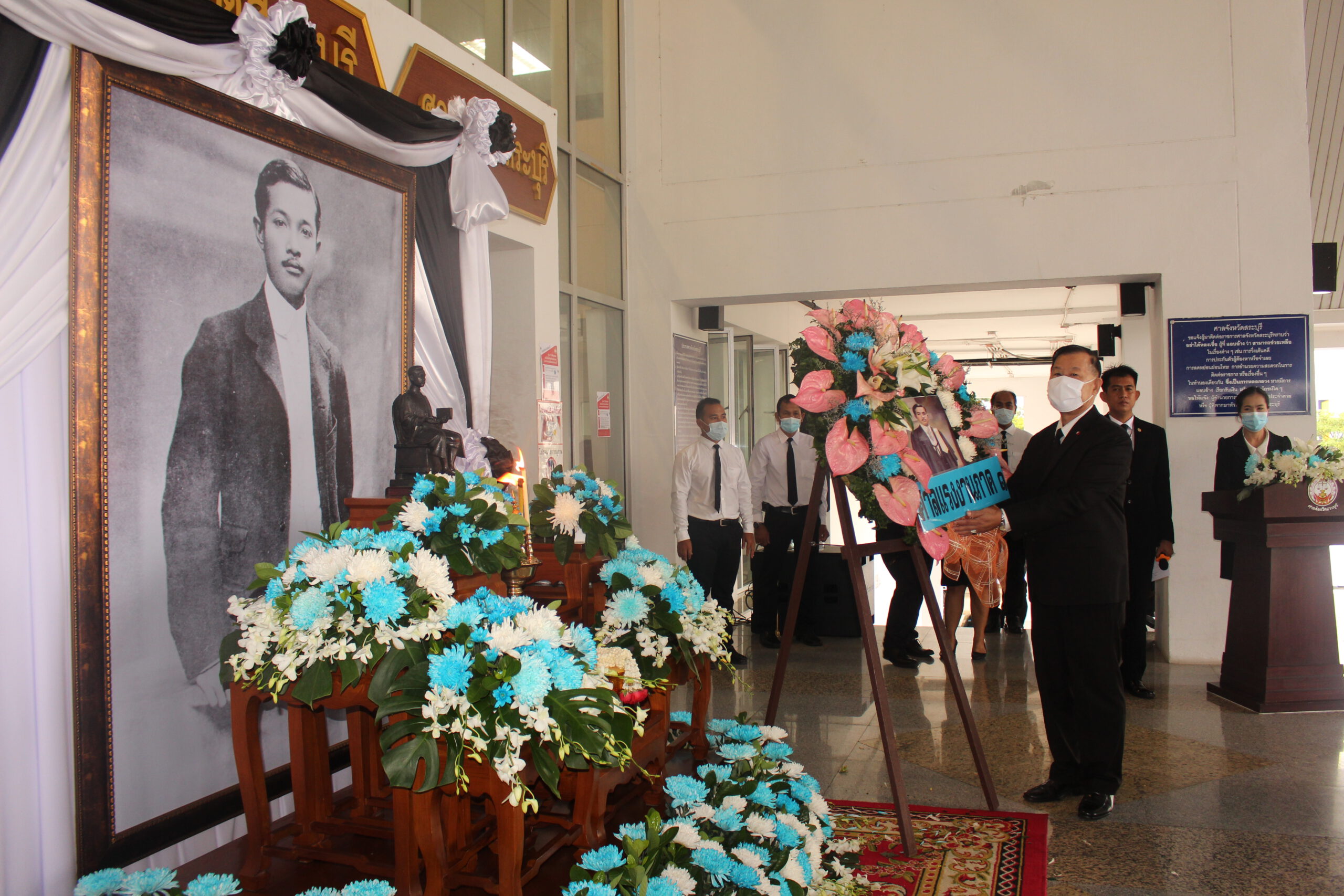 ผู้พิพากษาสมทบ ผู้ประนีประนอม และข้าราชการศาลแรงงานภาค 1 วางพวงมาลาถวายสักการะพระเจ้าบรมวงศ์เธอ พระองค์เจ้ารพีพัฒนศักดิ์ กรมหลวงราชบุรีดิเรกฤทธิ์ (พระบิดาแห่งกฎหมายไทย)
