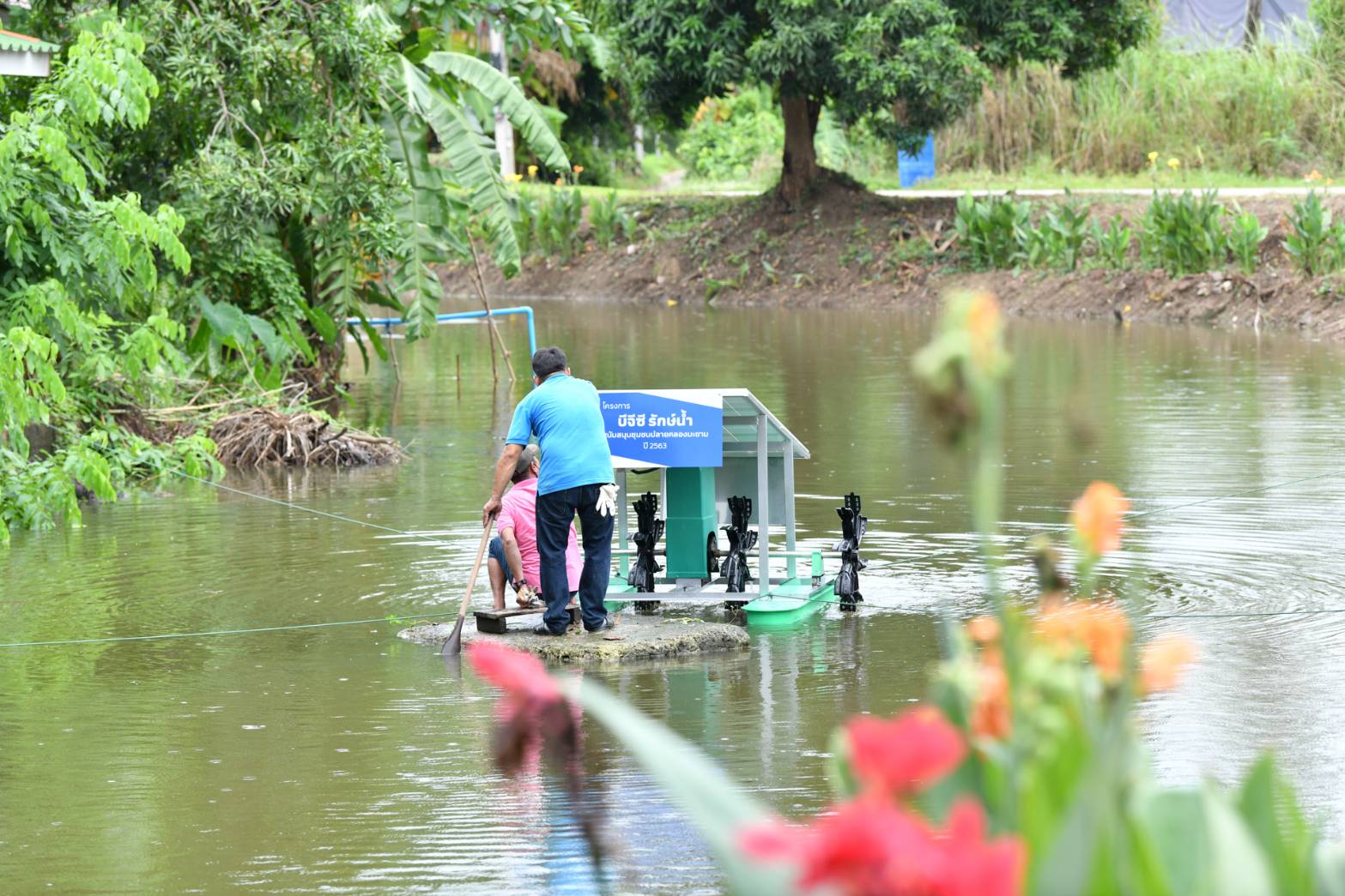 โดย “เจ็ดเสมียนรักษ์น้ำ” เป็นกิจกรรมต่อเนื่องที่ได้ร่วมกันปรับปรุงสภาพแวดล้อมคลองมะขามในปีที่ผ่านมา เพื่ออนุรักษ์น้ำและสิ่งแวดล้อม ซึ่งครั้งนี้ BGC ราชบุรีกล๊าส ได้ส่งมอบเครื่องกลเติมอากาศพลังงานแสงอาทิตย์ให้กับชุมชน และร่วมกันปลูกต้นพุทธรักษาจำนวน 100 ต้น พร้อมทั้งปรับปรุงซ่อมแซมศาลาอเนกประสงค์ของชุมชน อีกด้วย