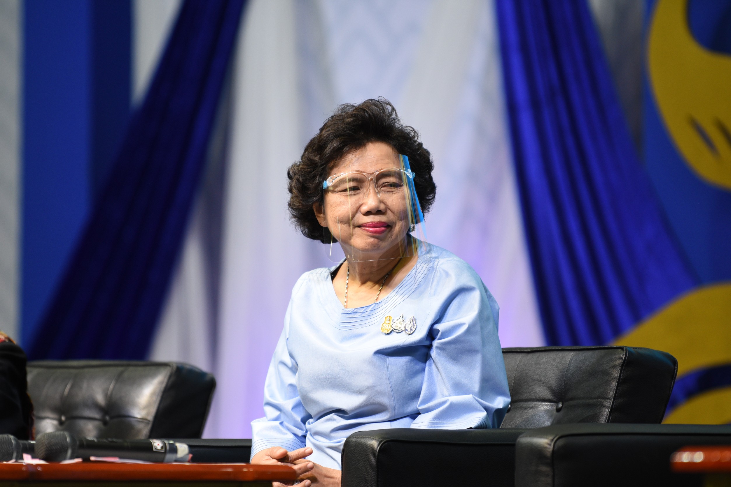 “เมื่อวันที่ 9 มิถุนายน 2563 คณะรัฐมนตรี โดยท่านนายกรัฐมนตรี พล.อ.ประยุทธ์ จันทร์โอชา ได้มีมติเห็นชอบมาตรการส่งเสริมและสนับสนุนการใช้และสวมใส่ผ้าไทย โดยการรณรงค์เชิญชวนคนไทยสวมใส่ผ้าไทยอย่างน้อยสัปดาห์ละสองวัน เพื่อส่งเสริมการอนุรักษ์มรดกทางวัฒนธรรมอันล้ำค่า รากเหง้าจากภูมิปัญญาของบรรพบุรุษ ซึ่งต้องขอขอบพระคุณท่านวิษณุ เครืองาม รองนายกรัฐมนตรี ที่สนับสนุนเรื่องนี้อย่างยิ่ง ซึ่งแสดงให้เห็นถึงความตั้งใจ ความมุ่งมั่นที่จะสืบสาน รักษา และต่อยอด พระราชปณิธานอันแน่วแน่ของ สมเด็จพระนางเจ้าสิริกิติ์ พระบรมราชินีนาถ พระบรมราชชนนีพันปีหลวง ให้ผ้าไทยเป็นสมบัติอันล้ำค่าของลูกหลานชาวไทย เป็นเครื่องมือสำคัญให้คนไทยในชนบทมีอาชีพที่มั่นคง ทั้งอาชีพเสริมและอาชีพหลัก สมเด็จพระนางเจ้าสิริกิติ์ พระบรมราชินีนาถ พระบรมราชชนนีพันปีหลวง ทรงทราบดีว่าพี่น้องเกษตรกรไทย นอกจากจะทำงานด้านการเกษตรแล้วนั้น ยังมีภูมิปัญญามรดกจากบรรพบุรุษในเรื่องหัตถศิลป์ทั้งหลาย โดยเฉพาะเรื่องผ้า การทอผ้า การประดิษฐ์ผ้า ที่ทรงไปรื้อฟื้นและสืบสาน ไม่ใช่การช่วยด้วยการมอบปลา แต่สอนให้เลี้ยงปลาเพื่อสร้างความมั่นคงอย่างยั่งยืน และยังส่งต่อถึงลูกหลานได้ด้วย