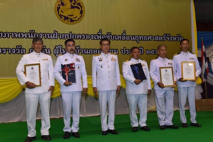 2.นายสมิทธิ สุภาพพรชัย กำนันตำบลเจ็ดเสมียน อำเภอโพธาราม รับโล่ประกาศเกียรติคุณ พร้อมอาวุธปืนลูกซองยาว 1กระบอก3.นางสาวกุลรีศา ศรีนวล ผู้ใหญ่บ้านหมู่ที่ 5 ตำบลเขาชะงุ้ม อำเภอโพธารามรับโล่เกียรติคุณ และปืนลูกซองยาว 1 กระบอก4.นายสุวัจน์ กิจนิตย์ชีว์ ผู้ช่วยผู้ใหญ่บ้านฝ่ายปกครองหมู่ที่6 ตำบลเจ็ดเสมียน อำเภอโพธาราม รับโล่เกียรติคุณและอาวุธปืนลูกซองยาว 1 กระบอก