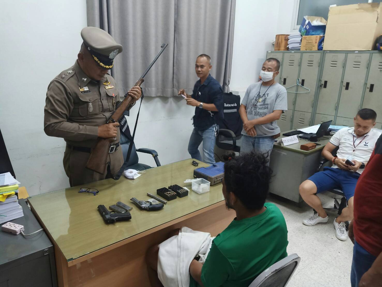 และ เครื่องกระสุนปืนไว้ในความครอบครอง โดยไม่ได้รับอนุญาต จากนั้นได้ทำการปิดล้อม