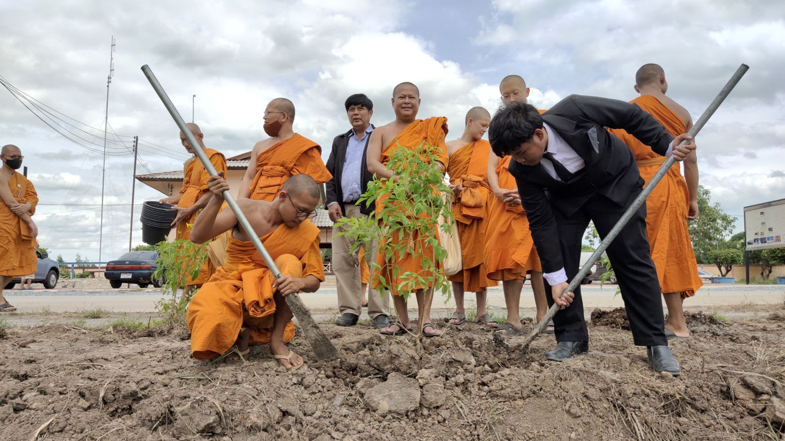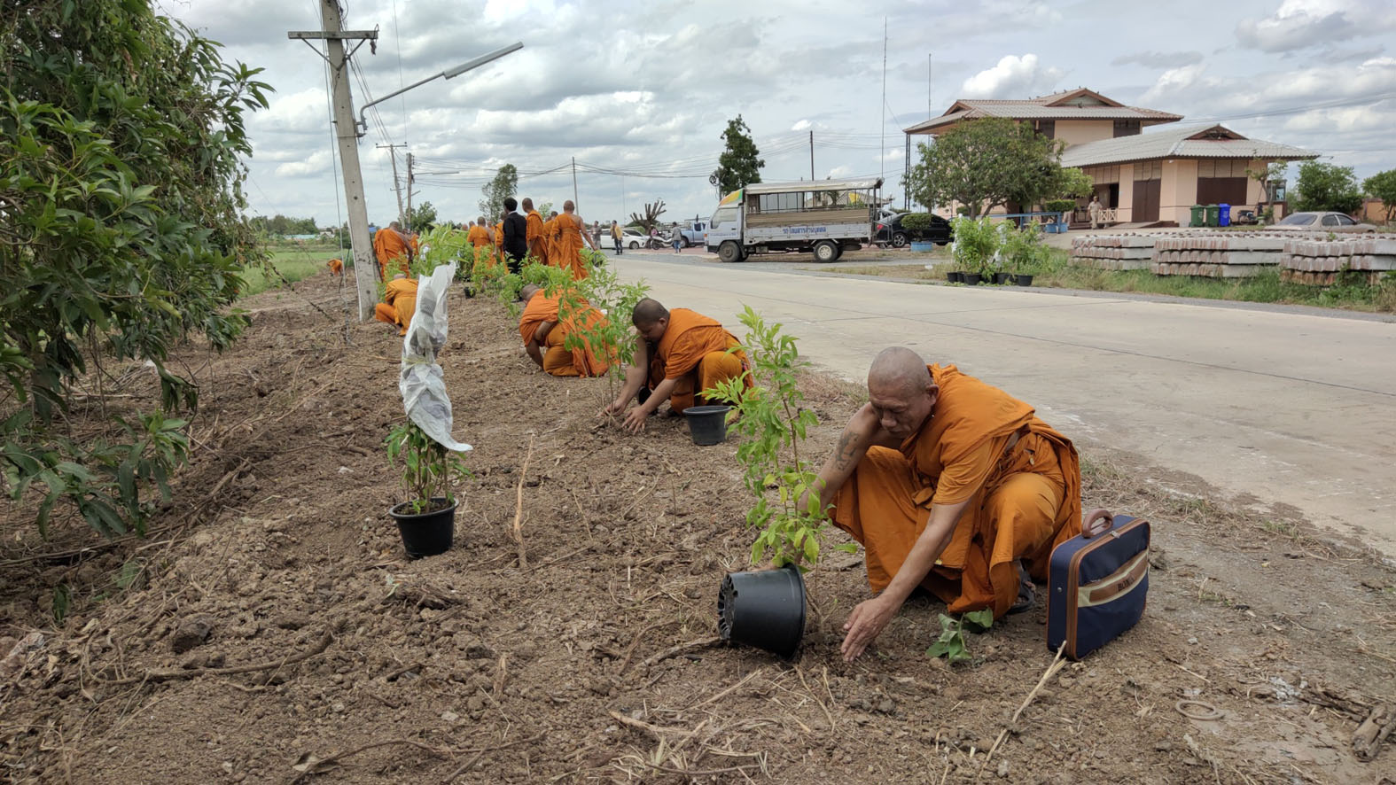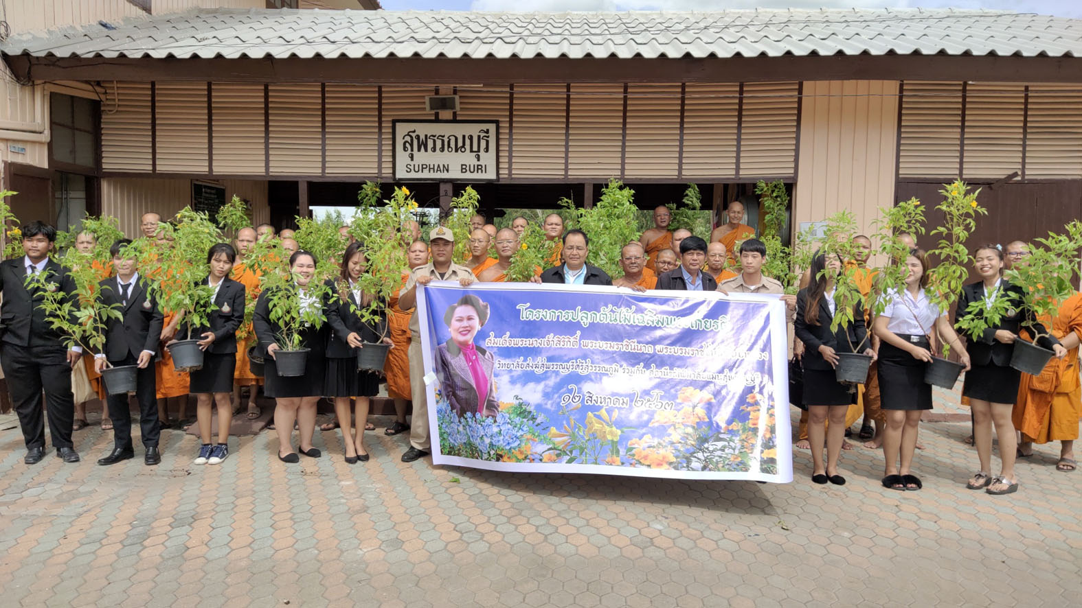 สุพรรณบุรี คณะพระภิกษุสงฆ์นิสิตประชาชนร่วมปลูกต้นทองอุไร5000ต้นเฉลิมพระเกียรติ