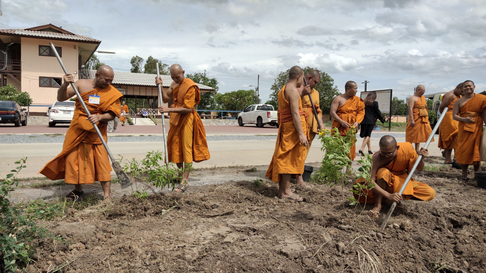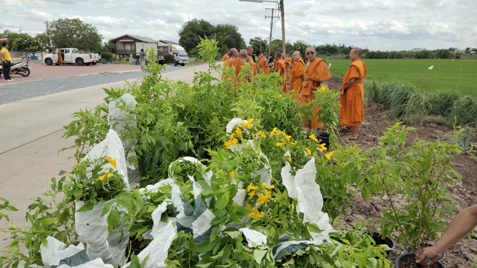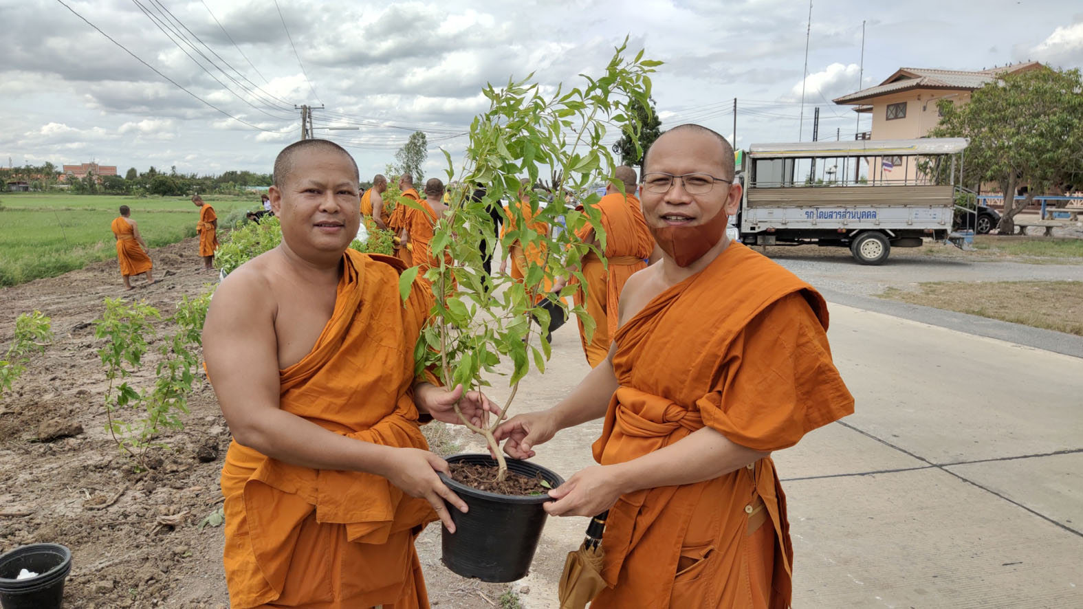 สุพรรณบุรี คณะพระภิกษุสงฆ์นิสิตประชาชนร่วมปลูกต้นทองอุไร5000ต้นเฉลิมพระเกียรติ