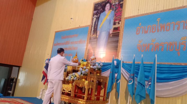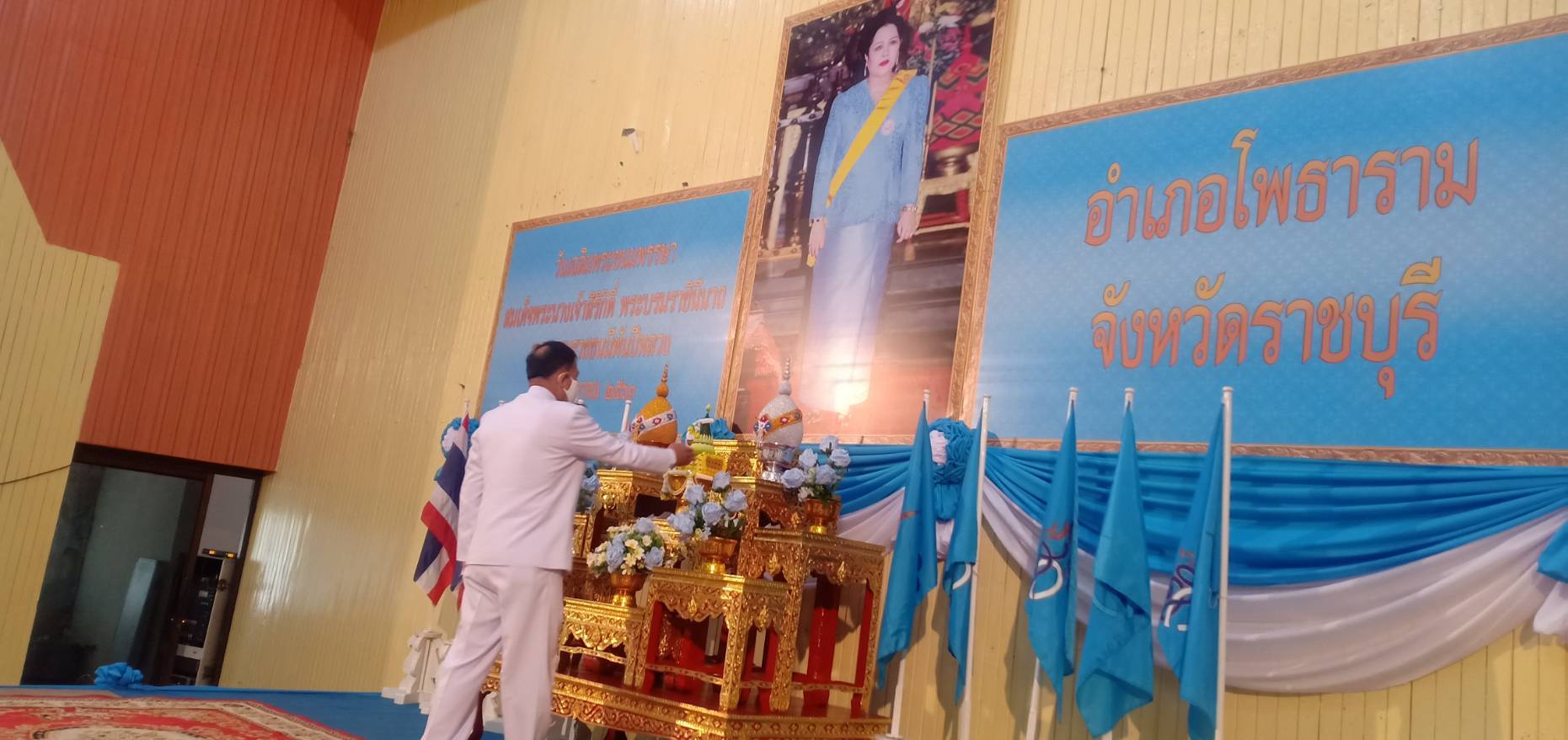 ผู้กำกับการสถานีตำรวจภูธรโพธาราม จังหวัดราชบุรี พันโท ชัยเดช รุณเกษม สัสดีอำเภอโพธาราม นายประสงค์ ตินพ กำนันตำบลท่าชุมพล ข้าราชการ ทหาร ตำรวจ จิตอาสา ประชาชนอำเภอโพธาราม ได้นำข้าราชการแต่งชุดเครื่องแบบปกติขาวและประชาชนทุกหมู่เหล่า พร้อมใจกันสวมใส่เสื้อสีฟ้า ประกอบพิธีจุดธูปเทียน บูชาพระรัตนตรัย จุดธูปเทียนเครื่องทองน้อย เบื้องหน้าพระบรมฉายาลักษณ์ สมเด็จพระนางเจ้าสิริกิติ์ พระบรมราชินีนาถ พระบรมราชชนนีพันปีหลวง เจ้าหน้าที่อารธนาศีล พระสงฆ์ให้ศีลจบ พระสงฆ์สวดพระพุทธมนต์ ประธานพร้อมด้วยข้าราชการชั้นผู้ใหญ่ ถวายเครื่องไทยธรรม ประธานทอดผ้าไตร จำนวน 10 ไตร พระสงฆ์อนุโมทนา ประธานกรวดน้ำ กราบลาพระรัตนตรัย และถวายความเคารพพระบรมฉายาลักษณ์ สมเด็จพระนางเจ้าสิริกิติ์ พระบรมราชินีนาถ พระบรมราชชนนีพันปีหลวง