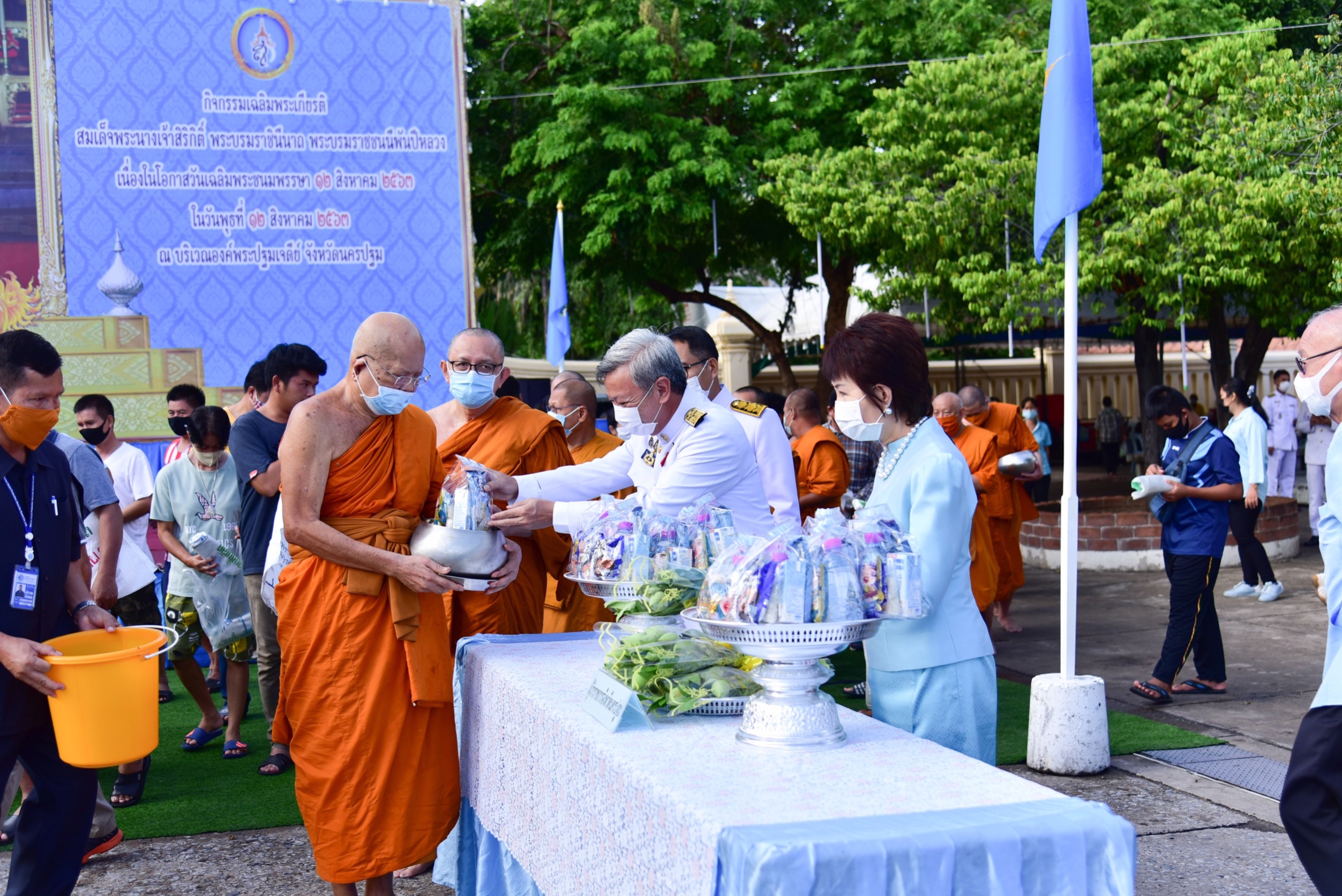 พสกนิกรชาวจังหวัดนครปฐม ร่วมทำบุญตักบาตรพระสงฆ์ 89 รูป ถวายเป็นพระราชกุศลแด่ สมเด็จพระนางเจ้าสิริกิติ์ พระบรมราชินีนาถ พระบรมราชชนนีพันปีหลวง