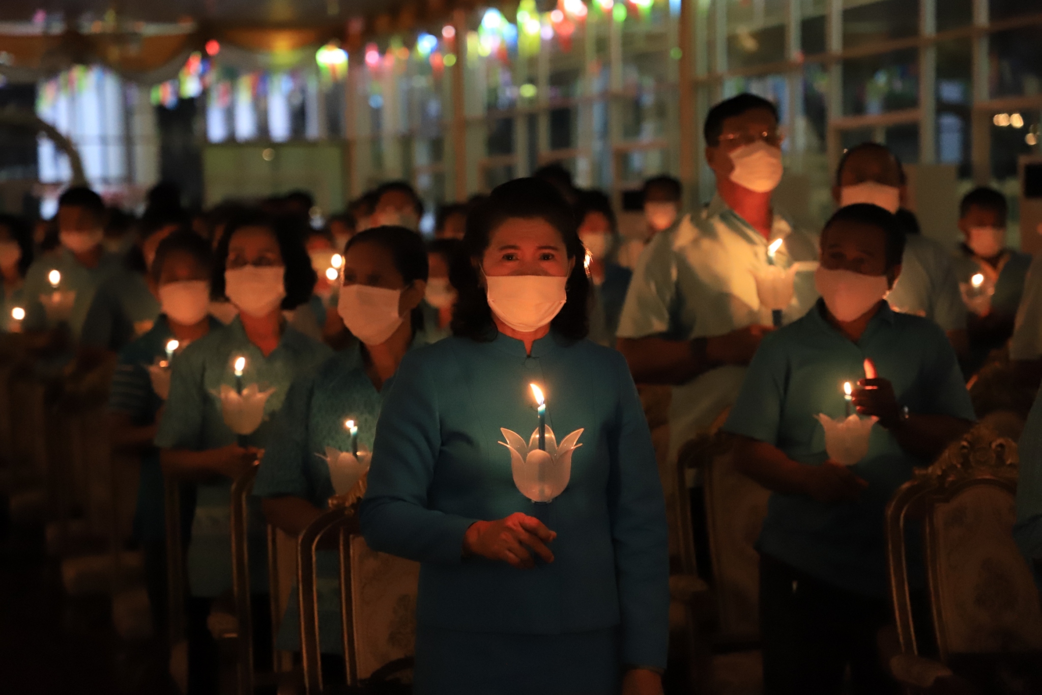 พสกนิกรชาวอำเภอสามพรานพร้อมใจถวายเครื่องราชสักการะและจุดเทียนถวายพระพรชัยมงคลพระบรมราชชนนีพันปีหลวง