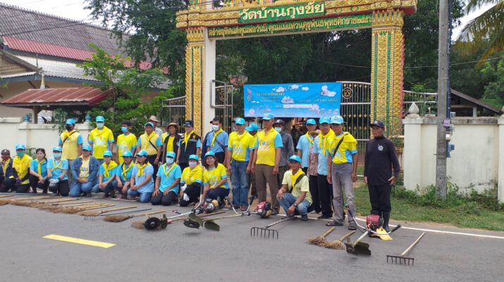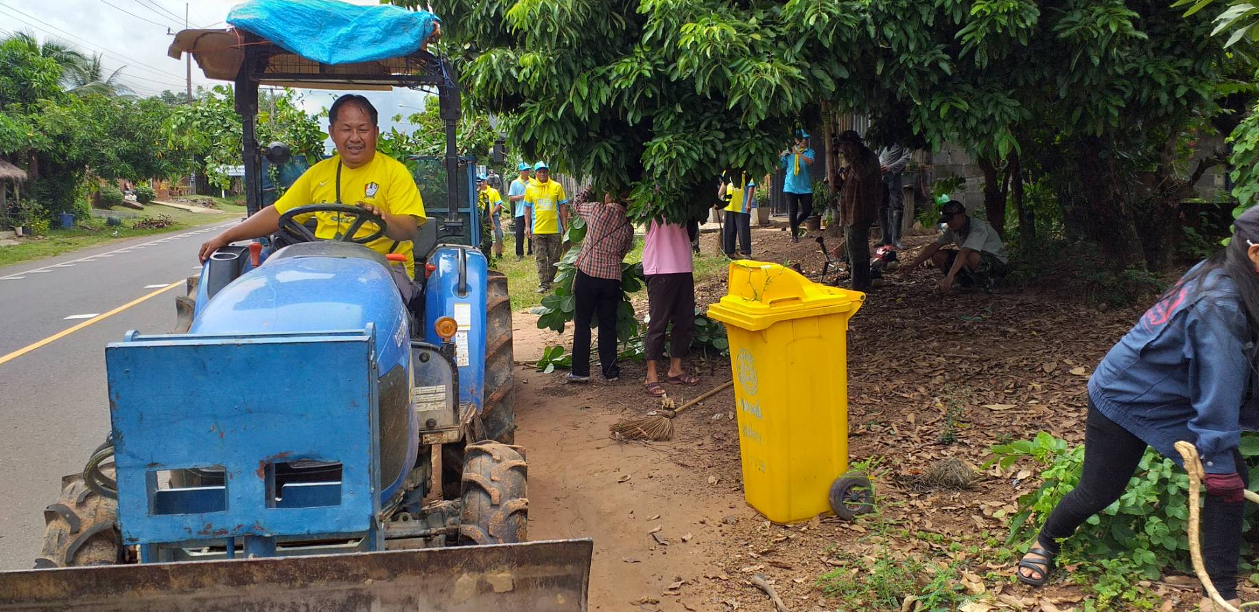 อำนาจเจริญ จิตอาสาพระราชทานตำบลดงบังปรับปรุงภูมิทัศน์บริเวณวัดบ้านกุงชัย ถนนภายในหมู่บ้าน