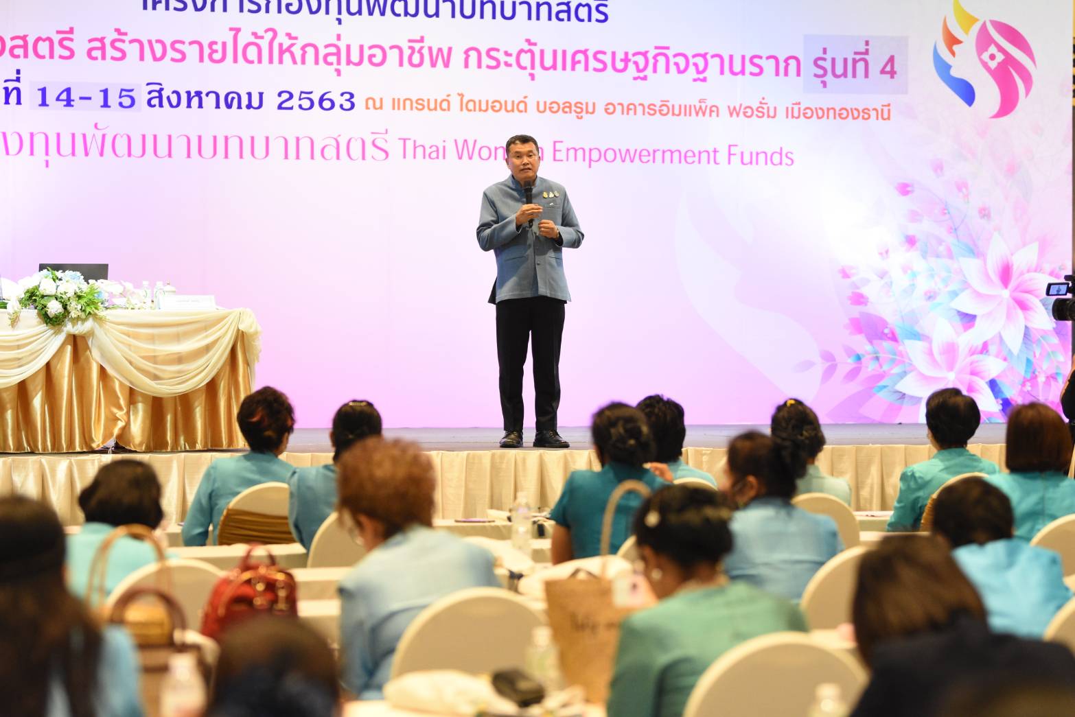 สำนักงานกองทุนพัฒนาบทบาทสตรี กรมการพัฒนาชุมชน กระทรวงมหาดไทย จัดโครงการ “กองทุนพัฒนาบทบาทสตรี สร้างพลังสตรี สร้างรายได้ให้กลุ่มอาชีพ กระตุ้นเศรษฐกิจฐานราก รุ่นที่ 1 – 4 ระหว่างวันที่ 8 – 15 สิงหาคม 2563 ณ อิมแพค เมืองทองธานี โดยมีวัตถุประสงค์เพื่อเพิ่มพูนความรู้และพัฒนาศักยภาพแก่กลไกการขับเคลื่อนกองทุนพัฒนาบทบาทสตรี และเครือข่ายกองทุนพัฒนาบทบาทสตรี ในการสร้างพลังสตรีในการพัฒนาชุมชน และเพื่อให้สตรีเป็นพลังในการส่งเสริมและกระตุ้นเศรษฐกิจฐานราก โดยกลุ่มเป้าหมายของโครงการฯ ประกอบด้วย หัวหน้าคณะทำงานขับเคลื่อนกองทุนพัฒนาบทบาทสตรีระดับจังหวัด 76 จังหวัด กรุงเทพมหานคร รวมจำนวน 77 คน และประธานคณะกรรมการพัฒนาสตรีจังหวัด (กพสจ.) จำนวน 76 จังหวัด เครือข่ายอาชีพจังหวัด กลุ่มอาชีพได้รับเงินจากกองทุนพัฒนาบทบาทสตรี และเจ้าหน้าที่พัฒนาชุมชนจังหวัด รวมทั้งสิ้น 1,733 คน โดยแบ่งการอบรมออกเป็น 4 รุ่น