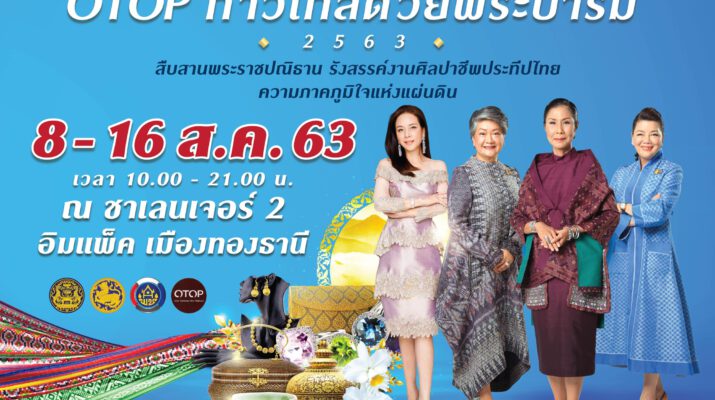 งาน “ศิลปาชีพ ประทีปไทย OTOP ก้าวไกล ด้วยพระบารมี 2563” วันที่ 16 สิงหาคมซึ่งเป็นวันสุดท้าย ขอเชิญทุกท่านมาชม ชิม ช้อป ผลิตภัณฑ์หัตถศิลป์อันทรงคุณค่า ฝีมือสุดประณีตจากมูลนิธิส่งเสริมศิลปาชีพฯ และสุดยอดผลิตภัณฑ์ OTOP ทั่วไทยกันได้ ตั้งแต่เวลา 10.00 – 21.00 น. ณ ชาเลนเจอร์ 2 อิมแพค เมืองทองธานี และพิเศษวันสุดท้าย ลุ้นรางวัลใหญ่มูลค่ารวมกว่า 300,000 บาท ขณะที่การจัดงานมีการปฏิบัติตามข้อกำหนดเพื่อป้องกันการแพร่ระบาดของไวรัสโควิด-19 อย่างเข้มงวดตามมาตรการของกระทรวงสาธารณสุขทุกประการ