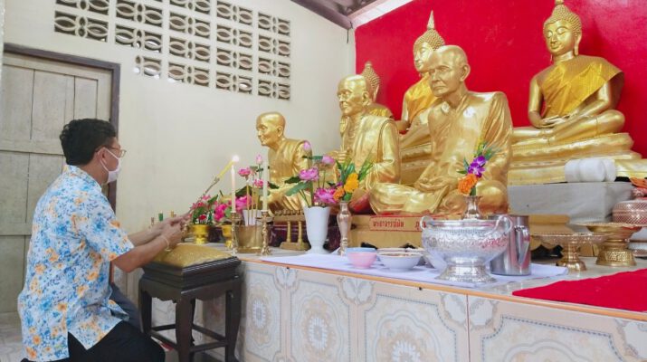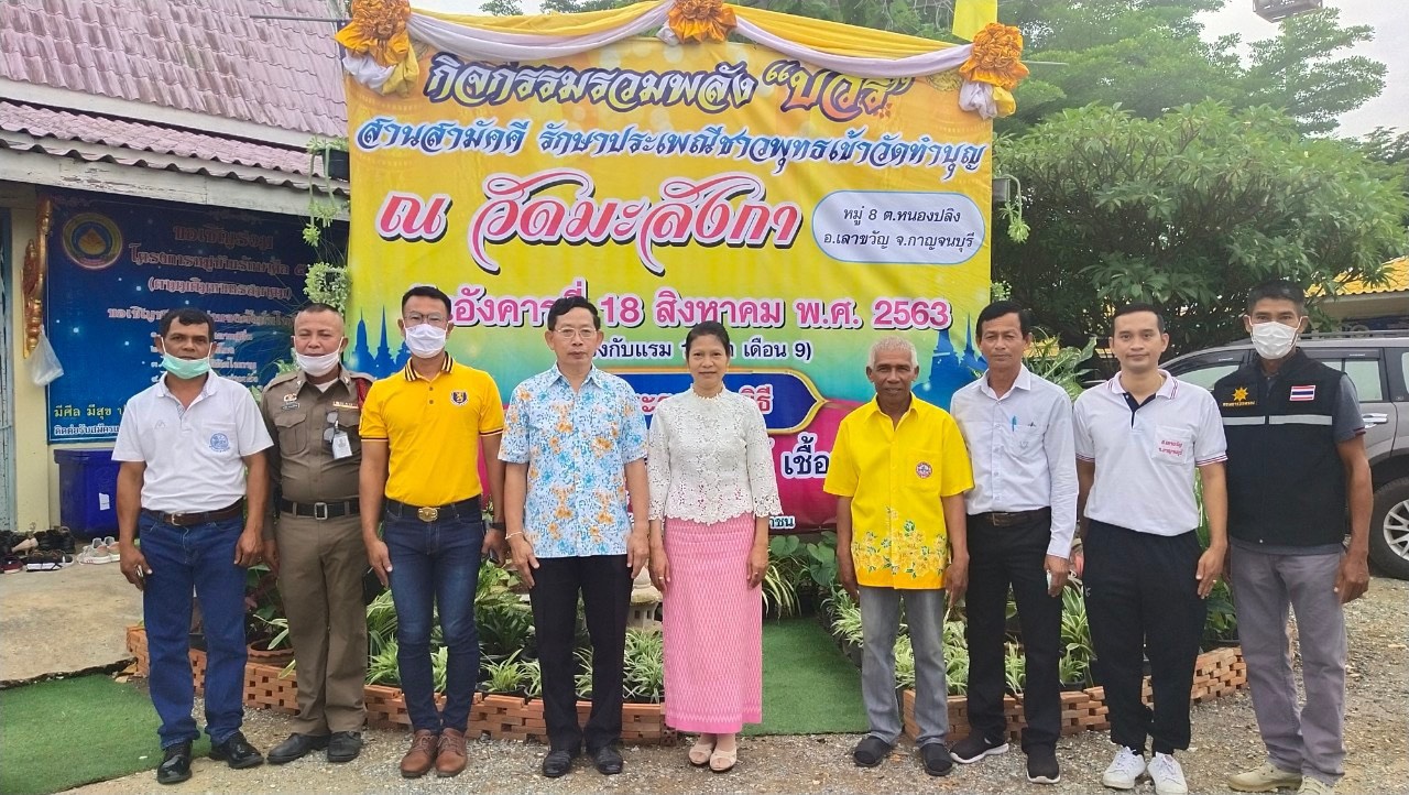 กาญจนบุรี นายอำเภอเลาขวัญ นำหน่วยงานราชการและผู้นำท้องถิ่นร่วมกิจกรรมรวมพลัง “ บ ว ร “ สานสามัคคี รักษาประเพณีชาวพุทธเข้าวัดทำบุญ