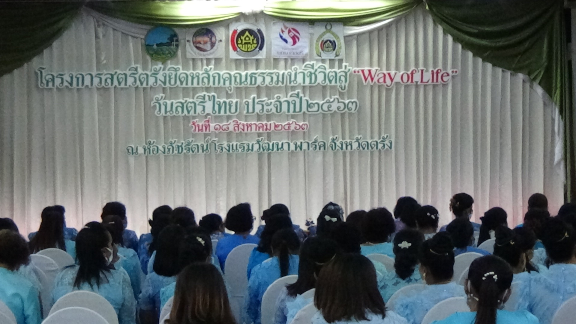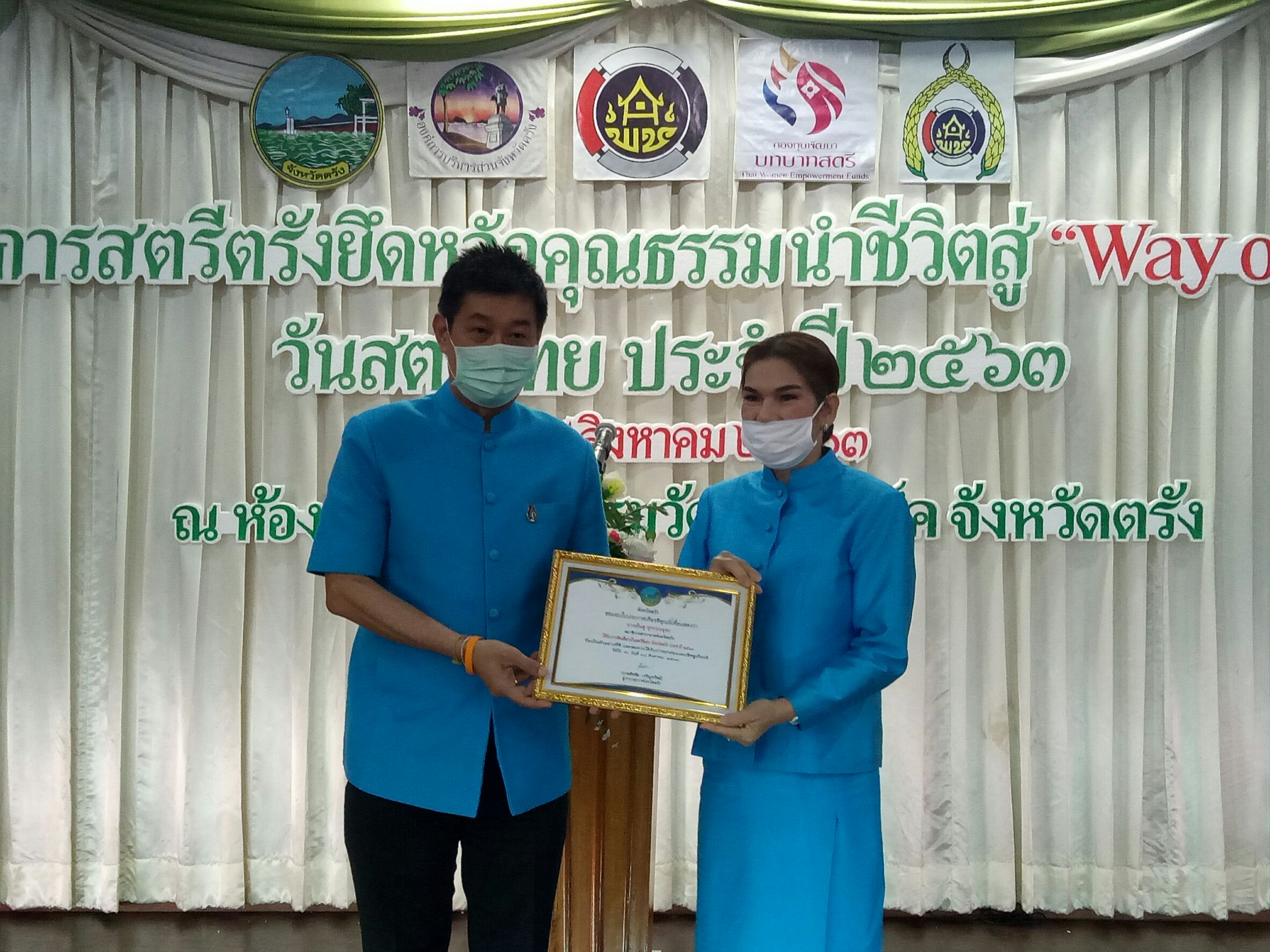 สำนักพัฒนาชุมชนจังหวัดตรัง จัดงานสตรีตรังยึดหลักคุณธรรมนำชีวิตสู่ way of life วันสตรีไทย ปี 2563 เพื่อเปิดโอกาสให้ผู้หญิงไทยมีโอกาสแสดงถึงความรู้ ความสามารถในการพัฒนาประเทศ ควบคู่ไปกับการสร้างความเข้มแข็งให้สถาบันสังคม และให้สามารถเทียบเท่าสตรีสากลของหลายประเทศที่เจริญแล้ว