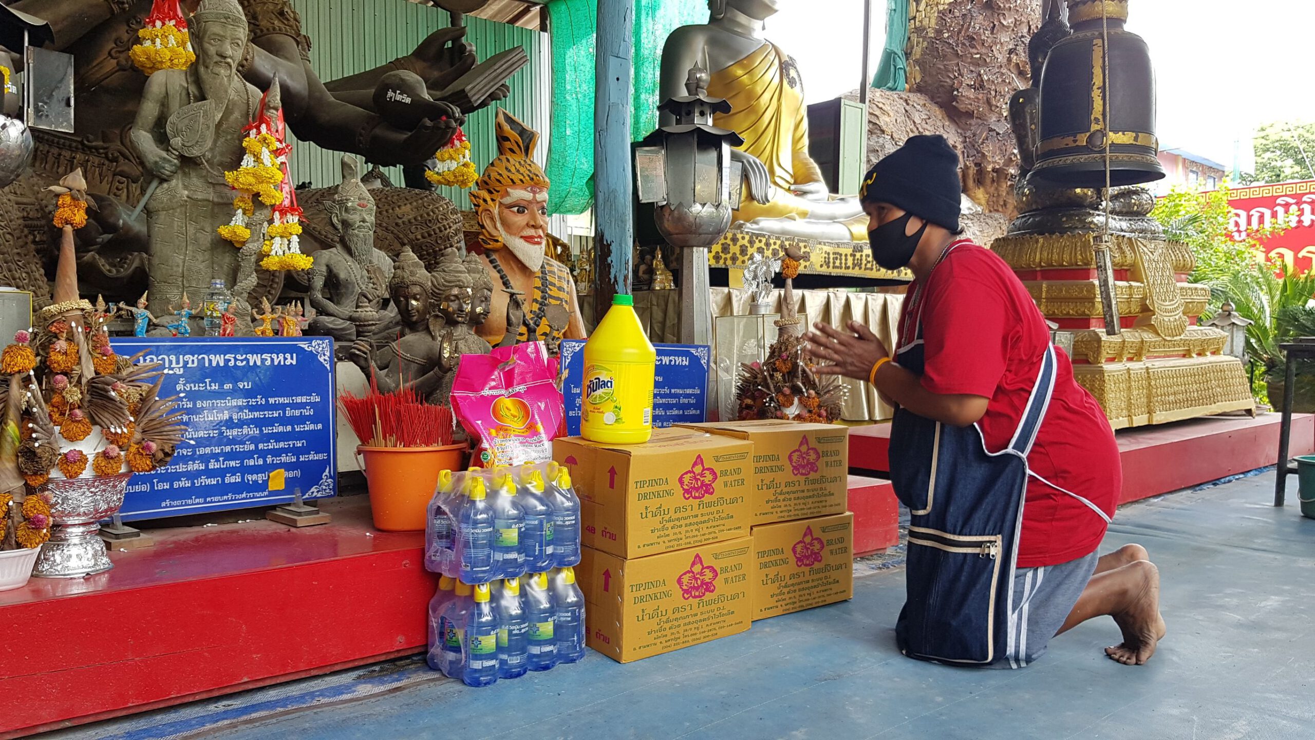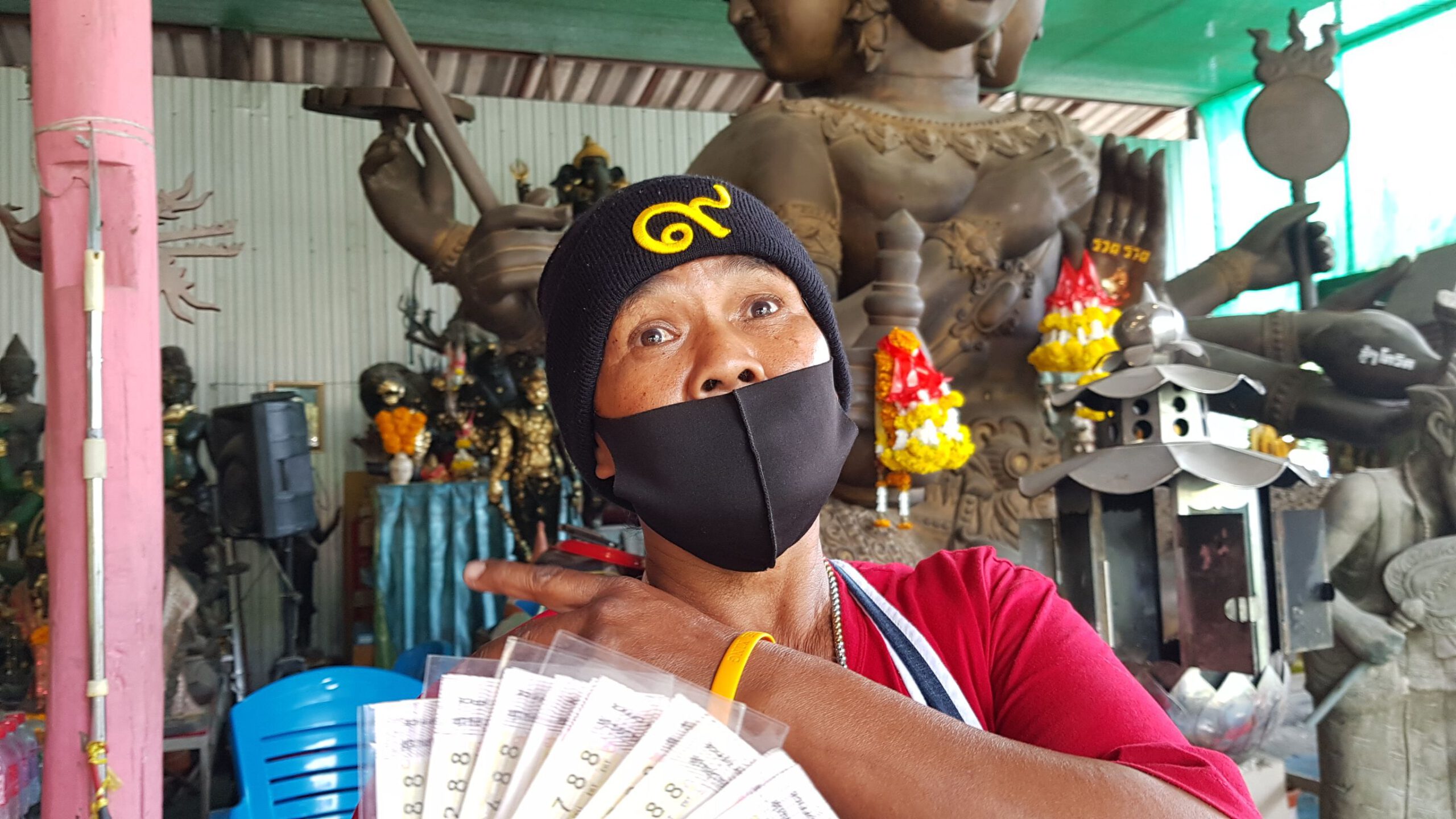 เมื่อเวลา 12.00 น. ของวันที่ 18 สิงหาคม 2563 ผู้สื่อข่าวรายงานมาจากวัดสว่างอารมณ์ แคแถว ต.ขุนแก้ว อ.นครชัยศรี จ.นครปฐม มาว่า นางสาวอมร ขันติสระพังหลวง อายุ 54 ปี อยู่บ้านเลขที่ 17 หมู่ 2 ต. คลองใหม่ อ. สามพรานจ. นครปฐม ผู้โชคดีที่ถูกสลากกินแบ่งรัฐบาลเลขท้ายสองตัวจำนวน 36 ใบ ได้รับเงินกว่า 70,000 บาท เดินทางนำ สิ่งของมาทำการแก้บนทั้งข้าวสาร น้ำมัน น้ำยาล้างจาน ไข่ไก่ น้ำดื่ม มาถวายอ งค์ท้าวมหาพรหม 4 หน้า 8 กร องค์ใหญ่ สูง 5 เมตร โดยเฉพาะองค์ท้าวมหาพรหมสามารถบันดาลสิ่งที่พึงปราถนาได้108 ประการ โดยขอให้สำเร็จในเรื่องการงาน การเงินธุรกิจ เพราะเชื่อว่าพระพรหมเป็นผู้ลิขิต