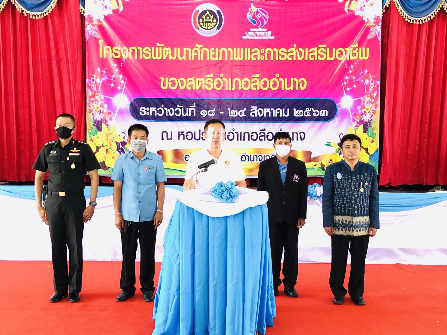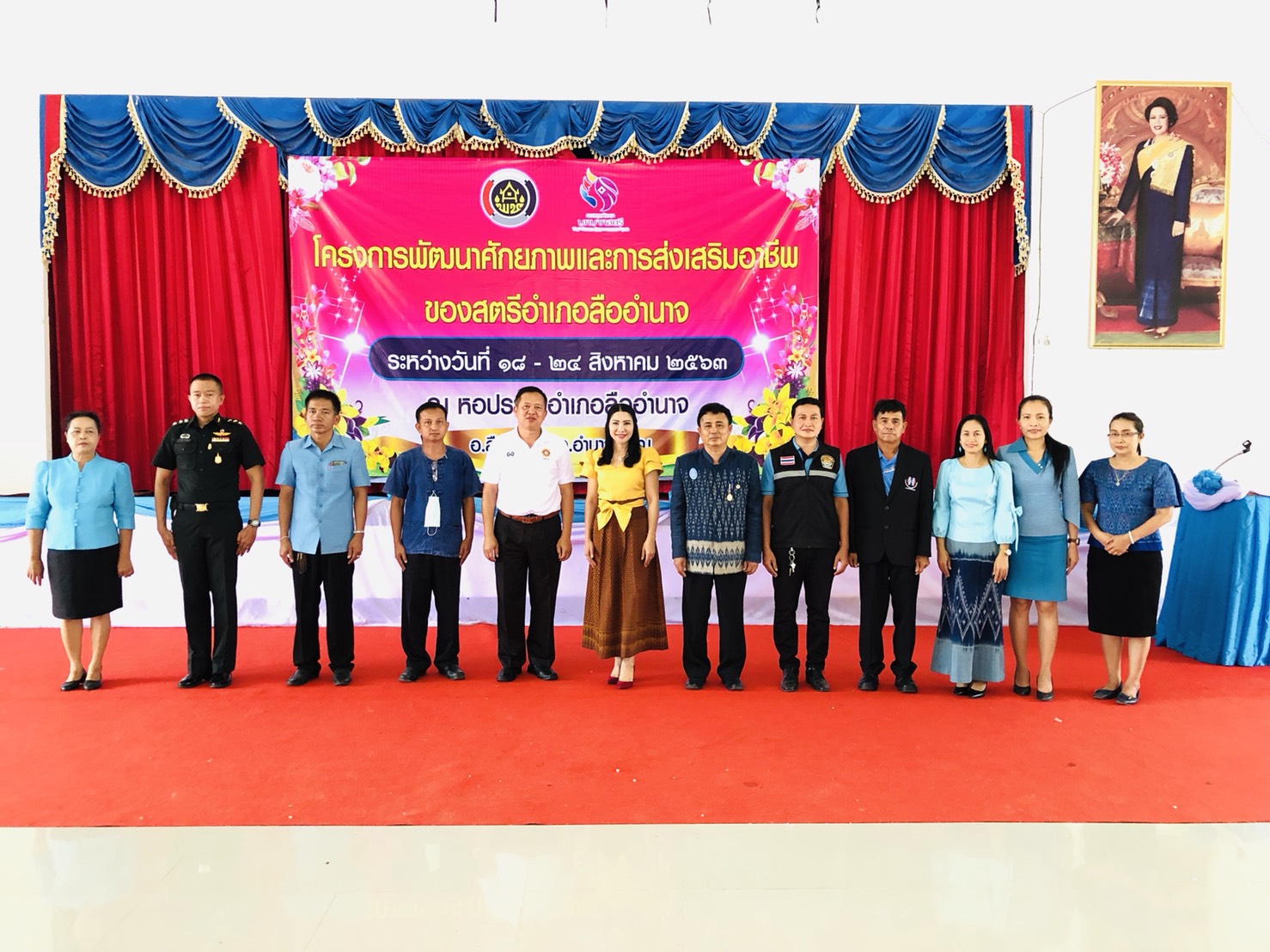 วัน ที่ 18-24สิงหาคม 63เวลา 09.00 น.นายธนูศักดิ์ เสมอภาค นายอำเภอลืออำนาจ จังหวัดอำนาจเจริญ เป็นประธานเปิดโครงการพัฒนาศักยภาพและส่งเสริมอาชีพของสตรีอำเภอลืออำนาจ ที่ หอประชุมอำเภอลืออำนาจ