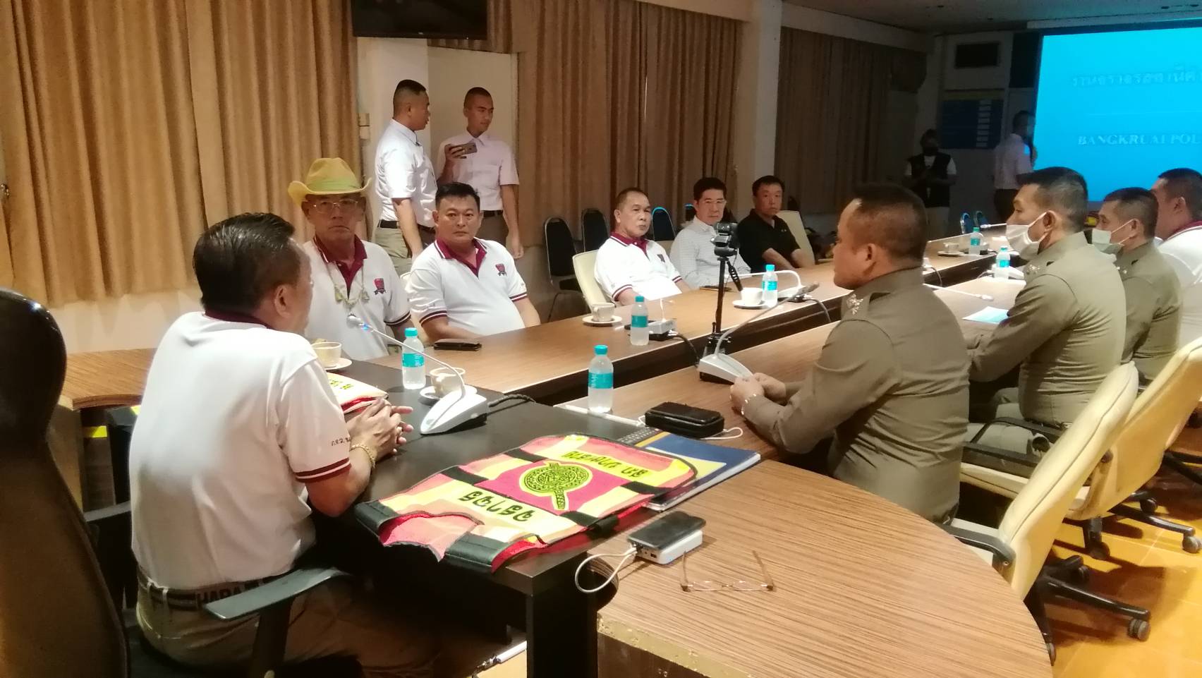 วันที่ 20 สิงหาคม 63 เวลา 10.00 น. ที่ห้องประชุม ชั้น 3 สภ.บางกรวย จ.นนทบุรี ดร.สิทธิศักดิ์ เจียว พงษ์พิพัฒน์ ผู้ช่วยดำเนินงานของสมาชิกวุฒิสภา และประธานกลุ่มเพื่อนประธานชาติ นายวรพจน์ ศรี นอบน้อม( ประธานกต.ตร.สภ. ปากเกร็ด) นายวรภัทร สุนทรผลิน( ประธานกต.ตร.สภ. บางศรีเมือง)นำคณะกต.ตร. ไร้พรมแดน( นนทบุรี) มาตรวจเยี่ยมพบปะพูดคุยกับ พ.ต.อ.ศิวัช ศรีวิชัย ผกก.สภ.บางกรวย พร้อมทั้งมอบเสื้อ สะท้อนแสงให้กับงานจราจรของสภ.บางกรวย จำนวน 20 ตัว