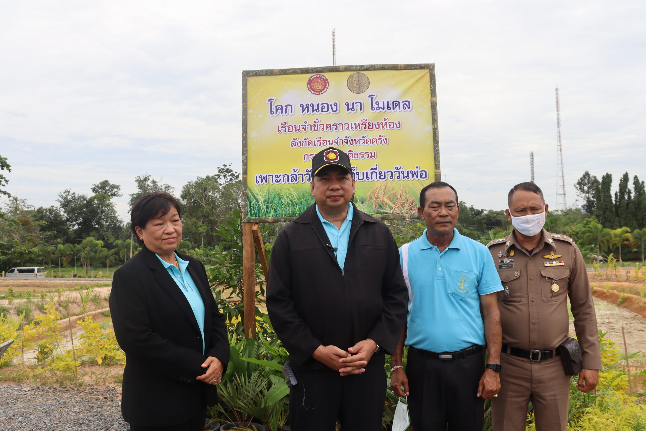 ที่เรือนจำชั่วคราวเหรียงห้อง อำเภอเมืองตรัง จังหวัดตรัง พ.ต.ท.ประวุธ วงศ์สีนิล รองอธิบดีกรมราชทัณฑ์ พร้อมด้วยนายภักดี แก้วเนียม ผู้บัญชาการเรือนจำจังหวัดตรัง และคณะ ร่วมเป็นประธานและหว่านกล้าข้าว ตามโครงการ โครงการ (โคก หนอง นาโมเดล) เพาะกล้าวันแม่ เก็บเกี่ยววันพ่อ ซึ่ง เรือนจำชั่วคราวเหรียงห้อง ตั้งอยู่ตำบลนาท่ามเหนือ อำเภอเมือง จังหวัดตรัง มีพื้นที่ทั้งหมด 283 ไร่ แบ่งพื้นที่ในการเพาะปลูกและเลี้ยงสัตว์ โดยปลูกยางพารา ผักสวนครัว เลี้ยงสัตว์ ได้แก่ หมู ไก่ แพะ วัว ปลาดุก ปลานิล เป็นต้น ปัจจุบันเรือนจำชั่วคราวเหรียงห้องได้แบ่งพื้นที่ 20 ไร่ จัดทำโครงการ โคก หนอง นา โมเดล อันเกิดจากพระราชดำรัสพระราชทานแก่บุคคลต่าง ๆ ที่เข้าเฝ้าถวายชัยมงคลเนื่องในโอกาสวันเฉลิมพระชนมพรรษา ณ ศาลาดุสิดาลัย สวนจิตรลดาฯ พระราชวังดุสิต วันอาทิตย์ที่ 4 ธันวาคม 2537