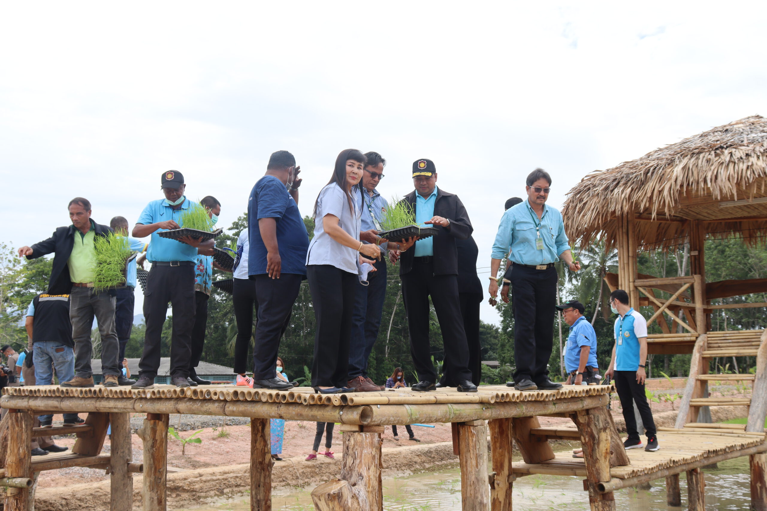 รองอธิบดีกรมราชทัณฑ์ ลงพื้นที่ปลูกต้นข้าว (นาโยน) ตามโครงการ (โคก หนอง นาโมเดล) เพาะกล้าวันแม่ เก็บเกี่ยววันพ่อ