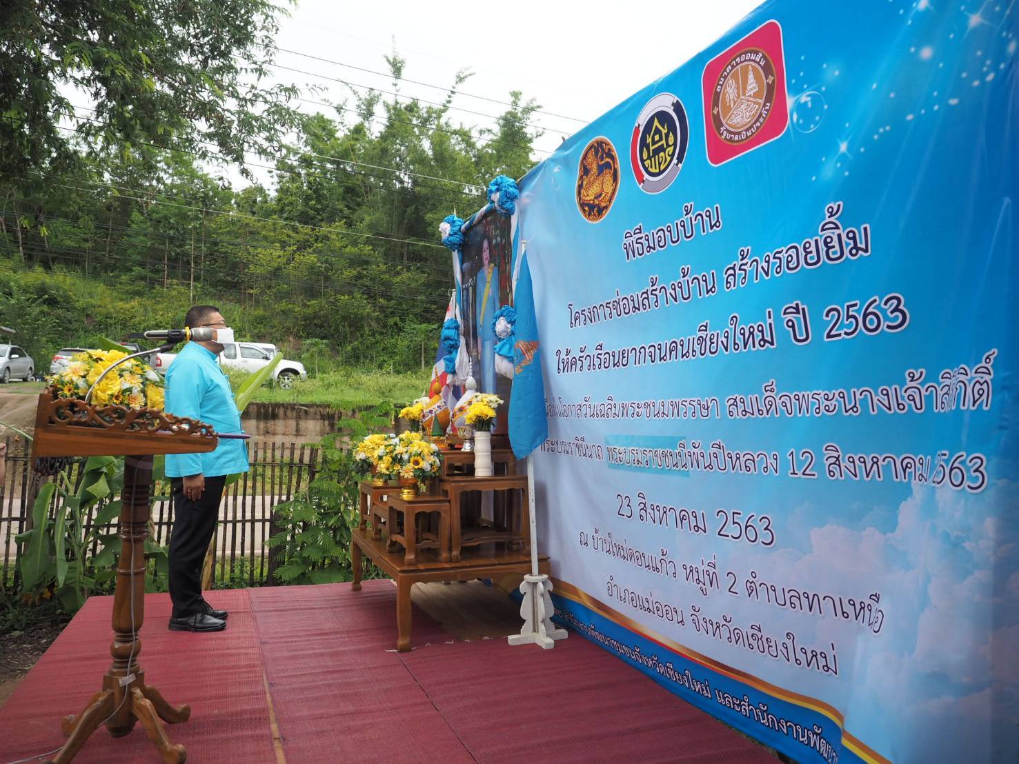 ผวจ.เชียงใหม่มอบบ้านโครงการซ่อมสร้างบ้าน สร้างรอยยิ้ม ให้กับครัวเรือนยากจนคนเชียงใหม่ ปี 2563 เพื่อเป็นการถวายพระราชกุศล เนื่องในโอกาสวันเฉลิมพระชนมพรรษาสมเด็จพระนางเจ้าสิริกิติ์ พระบรมราชินีนาถ พระบรมราชชนนีพันปีหลวง 12 สิงหาคม 2563