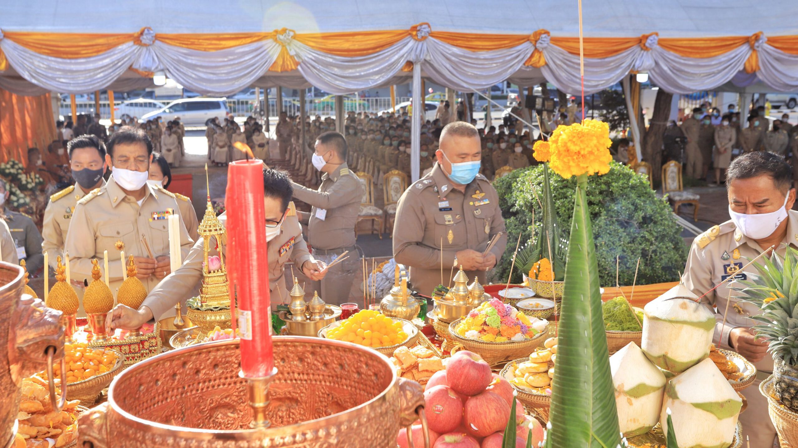 พ่อเมืองปทุมธานีนำข้าราชการ ประชาชน บวงสรวงสักการะศาลหลักเมืองครบรอบ42ปีและสักการะพระปทุมธรรมราชครบรอบ 121 ปี ประจำปี 2563