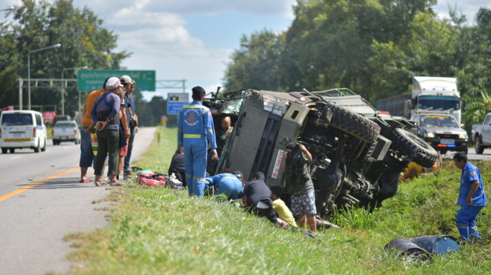 6 ล้อ ทหารสื่อสาร ค่ายกำแพงเพชร อัครโยธินฯ กระทุ่มแบน ยางแตกพลิกคว่ำเจ็บระนาว