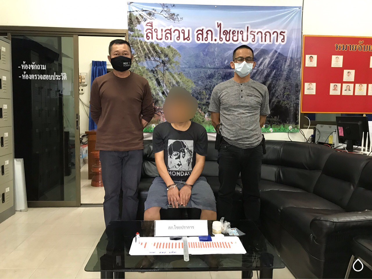 พ.ต.อ.พงศกร รัศมีโรจน์สกุล ผกก.สภ.ไชยปราการ จังหวัดเชียงใหม่ พ.ต.ท.ชาญยุทธ ไชยมะโน รอง ผกก.สส.สภ.ไชยปราการ เจ้าหน้าที่ชุดจับกุม สภ.ไชยปราการนำโดย พ.ต.ท.นนทพันธ์ สุวรรณศรี สว.สส.สภ.ไชยปราการ ,ร.ต.อ.แดน แสนอาสา เลขบัตรเจ้าพนักงาน ป.ป.ส. 590253 ,ร.ต.อ.กฤษณะ มั่นกันนาน เลขบัตรเจ้าพนักงาน ป.ป.ส. 584471 ร.ต.ท.ยุทธนา ไชยลังการ์ พร้อมพวกได้ร่วมทำการจับกุม ผู้ต้องหา นายสมศักดิ์ หรือแดง อายุ 47 ปี ม.5 ต.แม่ทะลบ อ.ไชยปราการ จ.เชียงใหม่ โดยกล่าวหา มียาเสพติดให้โทษประเภท 1 (เมทแอมเฟตามีนหรือยาบ้า) ไว้ในความครอบครองเพื่อจำหน่ายโดยผิดกฎหมาย ,เสพยาเสพติดให้โทษประเภท 1 (เมทแอมเฟตามีนหรือยาบ้า) เข้าสู่ร่างกายโดยไม่ได้รับอนุญาต สถานที่เกิดเหตุ บริเวณบ้านเลขที่ 152 ม.5 ต.แม่ทะลบ อ.ไชยปราการ จ.เชียงใหม่ พร้อมด้วยของกลาง ยาบ้า 287 เม็ด เจ้าหน้าที่ตำรวจ สภ.ไชยปราการ ได้รับแจ้งจากสายลับ ว่ามีนายแดง พักอยู่ที่บ้านไม่ทราบเลขที่ ในหมู่บ้านดงฉิมพลี ม.5 ต.แม่ทะลบ อ.ไชยปราการ จ.เชียงใหม่ มีพฤติการณ์ลักลอบจำหน่ายยาเสพติด(ยาบ้า) ให้กับกลุ่มวัยรุ่นในพื้นที่บ้านดงฉิมพลี ต.แม่ทะลบ อ.ไชยปราการฯ (โดยเจ้าหน้าที่ตำรวจทราบข้อมูลของบ้านหลังดังกล่าวแล้ว) จากนั้นเจ้าหน้าที่ชุดจับกุมจึงรายงานให้ผู้บังคับบัญชาทราบ และสั่งการให้ตรวจสอบและตรวจค้นห้องเช่าหลังดังกล่าว จากนั้นเจ้าหน้าตำรวจ สภ.ไชยปราการ ได้เดินทางถึงบริเวณบ้านดังกล่าวพบนายสมศักดิ์ หรือแดงฯ เดินอยู่ด้านในบ้านดังกล่าว เจ้าหน้าที่จึงแสดงตัวเป็นเจ้าหน้าที่ตำรวจและเจ้าพนักงาน ป.ป.ส. เพื่อขอทำการตรวจสอบและตรวจค้น เมื่อนายสมศักดิ์ หรือแดงฯ เห็นว่าเป็นเจ้าหน้าที่ตำรวจและเจ้าพนักงาน ป.ป.ส. ได้เดินไปยังบริเวณด้านหลังบ้านแล้วโยนสิ่งของบางอย่างทิ้ง (ซึ่งเจ้าหน้าที่ชุดจับกุมเห็นนายสมศักดิ์ หรือแดงฯ โยนทิ้งบริเวณดังกล่าว) จากนั้นนายสมศักดิ์ หรือแดงฯ จึงเดินมาเปิดประตูหน้าบ้านให้เจ้าหน้าที่ชุดจับกุม ต่อมาเจ้าหน้าที่จึงขอทำการตรวจค้นบริเวณบ้าน ผลการตรวจค้นพบยาเสพติด(ยาบ้า) จำนวน 273 เม็ด ซุกซ่อนอยู่บนกองขยะด้านหลังบ้าน และพบยาเสพติด(ยาบ้า) จำนวน 14 เม็ด ซุกซ่อนอยู่ในกระเป๋าสะพายข้างสีน้ำตาล ซื้อมาจากชาวเขาเผ่ามูเซอบ้านโป่งจ๊อก มาจำนวน 2 ถุง (ประมาณ 400 เม็ด) ในราคา 1 ถุง ถุงละ 2,000 บาท และได้จำหน่ายให้กับวัยรุ่นในพื้นที่บ้านดง ม.5 ต.แม่ทะลบ อ.ไชยปราการฯ ไปแล้วบางส่วน โดยตนได้เสพยาเสพติด (ยาบ้า) มาก่อนนี้จริง จำนวน 2-3 เม็ด โดยวิธีลนด้วยความร้อนแล้วสูดดมควันเข้าสู่ร่างกาย” จากนั้นเจ้าหน้าที่ชุดตรวจค้นจับกุมจึงได้นำตัวนายสมศักดิ์ 