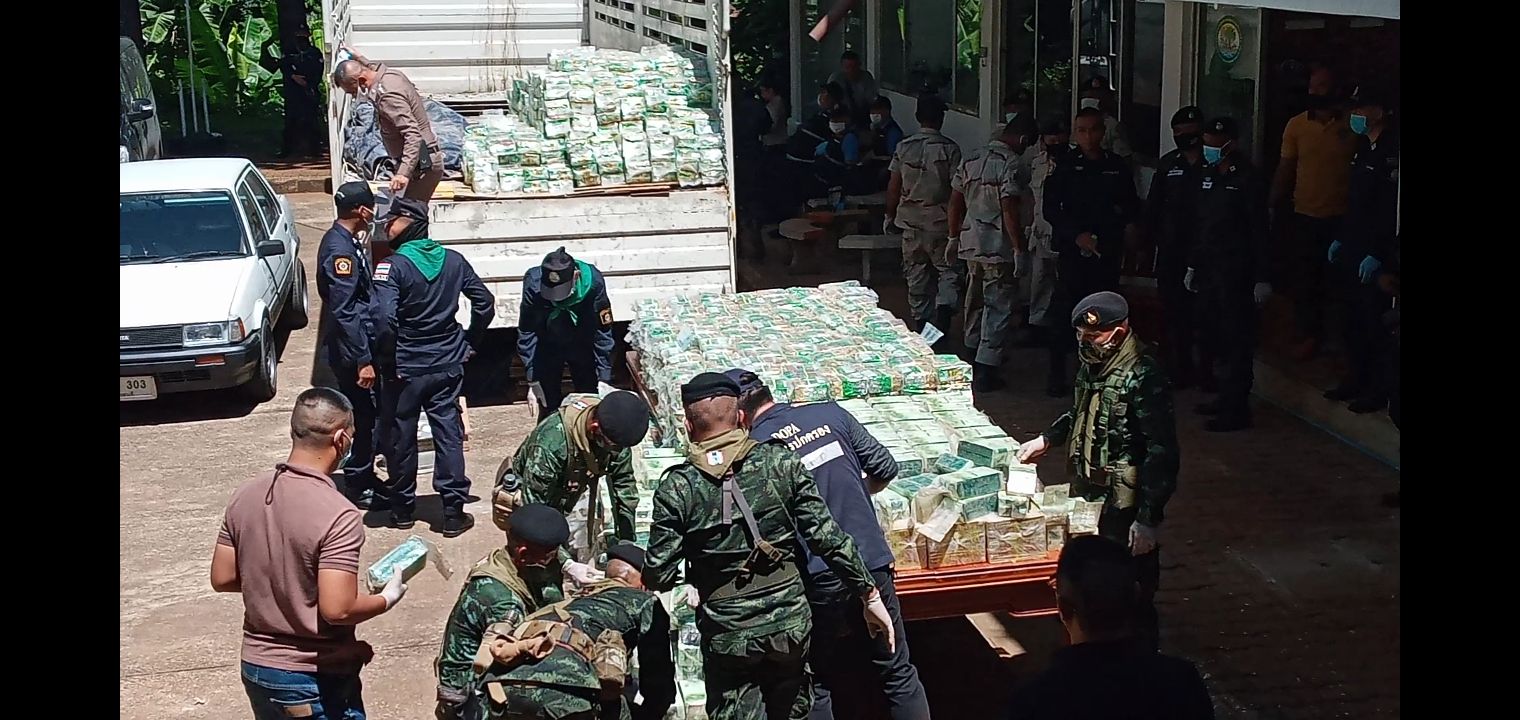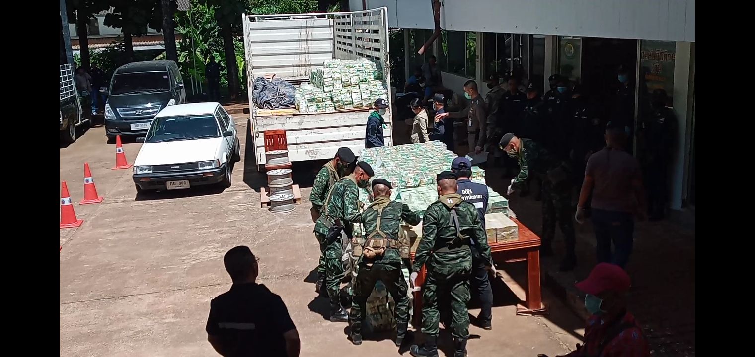กาญจนบุรี ทหาร ตำรวจ ทองผาภูมิ สนธิกำลัง ตชด.และปกครองรวบหนุ่มใหญ่วัย 59 ปีขับรถบรรทุกซุกซ่อนสารเสพติดไว้ใต้พื้นกะบะรถตรวจค้นพบยาไอซ์ชุกซ่อนมา1385 กิโลกรัม เฮโรอีน 77กิโลกรัมและเคตามิ 500 กิโลกรัม รวมมูลค่ากว่า 1,600 ล้านบาท
