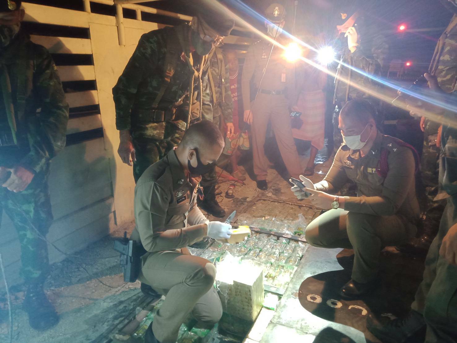 จึงน่าสงสัยว่าอาจจะมีการลักลอบขนสิ่งของผิดกฎหมายมาภายในรถคันดังกล่าว เมื่อทำการเรียกตรวจค้น พบว่ารถคันดังกล่าว ได้มีการดัดแปลงพื้นกระบะให้กลายเป็นช่องเก็บของลับ ภายในซุกซ่อนยาเสพติดซึ่งบรรจุในห่อชาเอาไว้เป็นจำนวนมาก เจ้าหน้าที่จึงได้ทำการ นำยาเสพติดดังกล่าวออกมาตรวจสอบ พบว่า ประกอบด้วย ยาไอซ์จำนวน 1,385 ห่อ น้ำหนักรวม 1,385 กิโลกรัม เฮโรอีน 10 ห่อ น้ำหนักรวม 77 กิโลกรัม เคตามีนจำนวน 500 ห่อ น้ำหนัก 500 กิโลกรัม เจ้าหน้าที่จึงได้ควบคุมตัวนายศักดิ์ชัยมาสอบปากคำเพิ่มเติมที่สถานีตำรวจภูธรทองผาภูมิ จากการสอบสวน นายศักดิ์ชัยให้การรับสารภาพว่า ได้รับการว่าจ้าง ให้ขับรถยนต์เก๋งขึ้นมาพักค้างคืนที่รีสอร์ทในพื้นที่ด่านเจดีย์สามองค์ อำเภอสังขละบุรี เพื่อรอที่จะขับรถบรรทุกกึ่งพ่วง 12 ล้อคันดังกล่าว ออกจากบริเวณด่านเจดีย์สามองค์มุ่งหน้าไปยังจังหวัดนครปฐมเพื่อนำไปส่งให้กับลูกค้า โดยได้รับการว่าจ้างในราคาเที่ยวละ 150,000 บาท สำหรับการจับกุมยาเสพติดในครั้งนี้ ถือเป็นการจับกุมยาเสพติดครั้งใหญ่ที่สุดในจังหวัดกาญจนบุรี ที่ไม่เคยมีการตรวจยึดยาเสพติดได้มากเท่านี้มาก่อน มูลค่าของยาเสพติดทั้งหมดคาดว่าน่าจะไม่ต่ำกว่า 1600 ล้านบาท