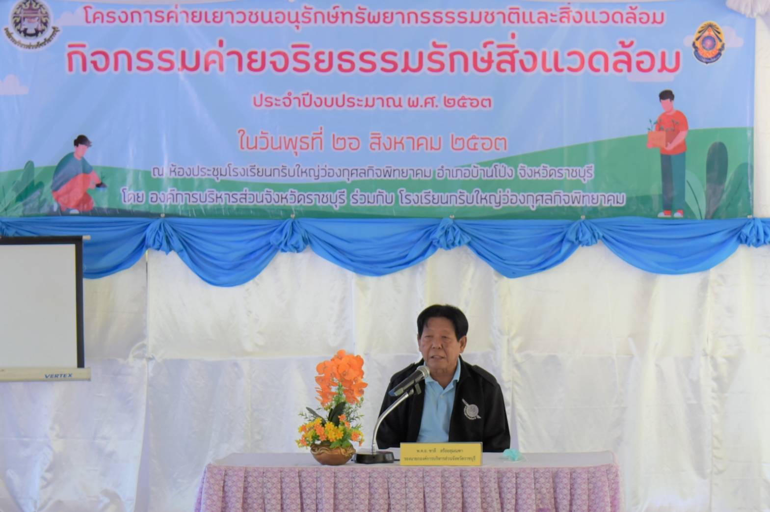 เมื่อเช้าวันที่ 26 สิงหาคม 2563 พ.ต.อ.ชาลี สร้อยสุมณฑา รองนายก อบจ.ราชบุรี เป็นประธานเปิดโครงการค่ายเยาวชนอนุรักษ์ทรัพยากรธรรมชาติและสิ่งแวดล้อม (กิจกรรมค่ายจริยธรรมรักษ์สิ่งแวดล้อม) ประจำปี 2563 โดยมีนายอุดม นิธิเศรษฐทรัพย์ ประธานสภา อบจ.ราชบุรี พร้อมด้วย สมาชิกสภาองค์การบริหารส่วนจังหวัดราชบุรี หัวหน้าส่วนราชการ คณะครู-อาจารย์ ร่วมเป็นเกียรติพิธีเปิดโครงการดังกล่าว ผู้ช่วยศาสตราจารย์ พิเศษ ดร.จิตติมา พักเพียง รองปลัด อบจ.ราชบุรี เป็นผู้กล่าวรายงานวัตถุประสงค์ของการจัดโครงการ เพื่อให้เยาวชนได้มีส่วนร่วมในการอนุรักษ์ทรัพยากรธรรมชาติและสิงแวดล้อม