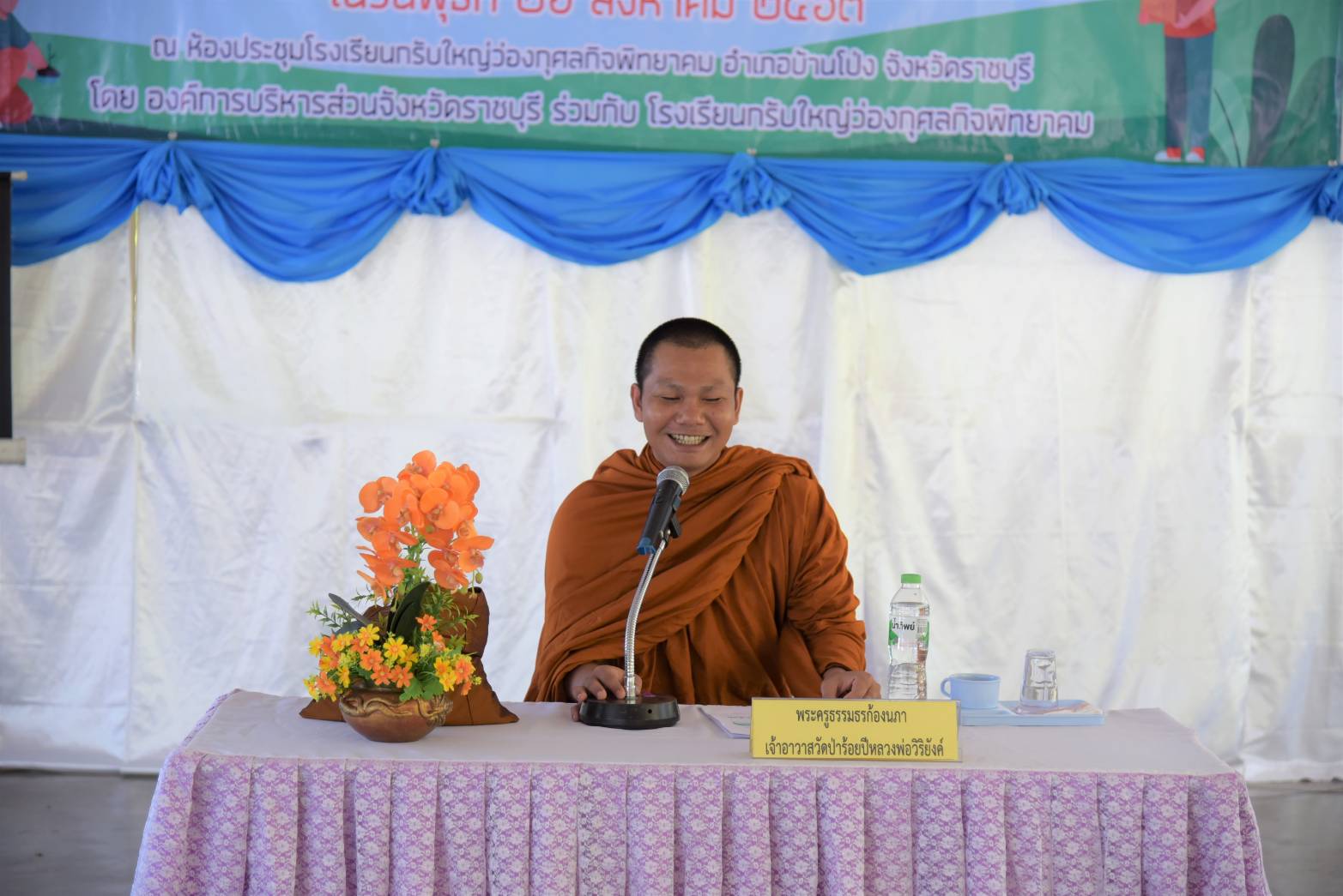 โดยใช้หลักคุณธรรม – จริยธรรม มีท่านพระครูธรรมธรก้องนภา เจ้าอาวาสวัดป่าร้อยปีหลวงพ่อวิริยังค์ ต.หินกอง อ.เมืองราชบุรี และนายเสรีย์ นาคบุญ หัวหน้าศูนย์ศึกษาธรรมชาติและสัตว์ป่าเขาน้ำพุพร้อมคณะฯ มาเป็นวิทยากรบรรยายให้ความรู้แก่ผู้เข้ารับการอบรม มีนางจันทรา เรือนทองดี ผู้อำนวยการโรงเรียนกรับใหญ่ว่องกุศลกิจพิทยาคมให้การต้อนรับ ณ หอประชุมโรงเรียนกรับใหญ่ว่องกุศลกิจพิทยาคม ต.กรับใหญ๋ อ.บ้านโป่ง จ.ราชบุรี .