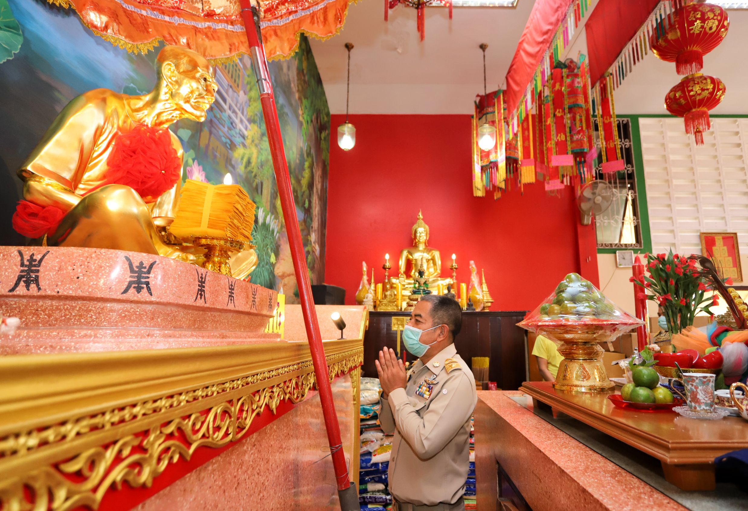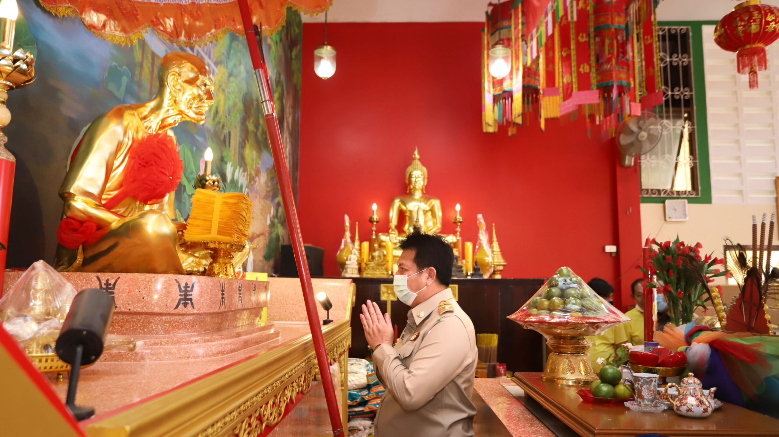เมื่อเวลา 09.00 น.วันที่ 27 ส.ค.63 ที่ วัดศาลเจ้า อำเภอเมืองปทุมธานี จังหวัดปทุมธานี ดร.พินิจ บุญเลิศ ผู้ว่าราชการจังหวัดปทุมธานี ประธานพิธีบวงสรวงบูรพาจารย์ อดีตเจ้าอาวาสและสิ่งศักดิ์สิทธิ์ ประจำวัดศาลเจ้าในการจัดสร้างครอบน้ำทิพย์พระปทุมธรรมราชและพระปทุมธรรมราช (จำลอง) โดยมี นายกิตติพงศ์ ทองปุย ผู้พิพากษาหัวหน้าศาลจังหวัดปทุมธานี นายชาธิป รุจนเสรี รองผู้ว่าราชการจังหวัดปทุมธานี นายจรูญศักดิ์ สิงหเดช รองผู้ว่าราชการจังหวัดปทุมธานี นางดลวสา บุญเลิศ นายกเหล่ากาชาดจังหวัดปทุมธานี พล.ต.ต.ชยุต มารยาทตร์ ผบก.ภ.จว.ปทุมธานี นายอาวุธ วิเชียรฉาย นายอำเภอเมืองปทุมธานี นายพิษณุ ประภาธนานันท์ นายอำเภอธัญบุรี นางสาวธนียา นัยพินิจ หัวหน้าสํานักงานจังหวัดปทุมธานี นางสาวฐิต์ณัฐ สมบัติศิริ วัฒนธรรมจังหวัดปทุมธานี ว่าที่ ร.ต.ขรรค์ไชย ทันธิมา ท้องถิ่นจังหวัดปทุมธานี นายสายัณ นพขำ นายกเทศมนตรีตำบลบ้านกลาง หัวหน้าส่วนราชการ ข้าราชการ-ทหาร-ตำรวจ-ประชาชน ชาวจังหวัดปทุมธานี ร่วมกันประกอบพิธี ที่ วัดศาลเจ้า อำเภอเมืองปทุมธานี