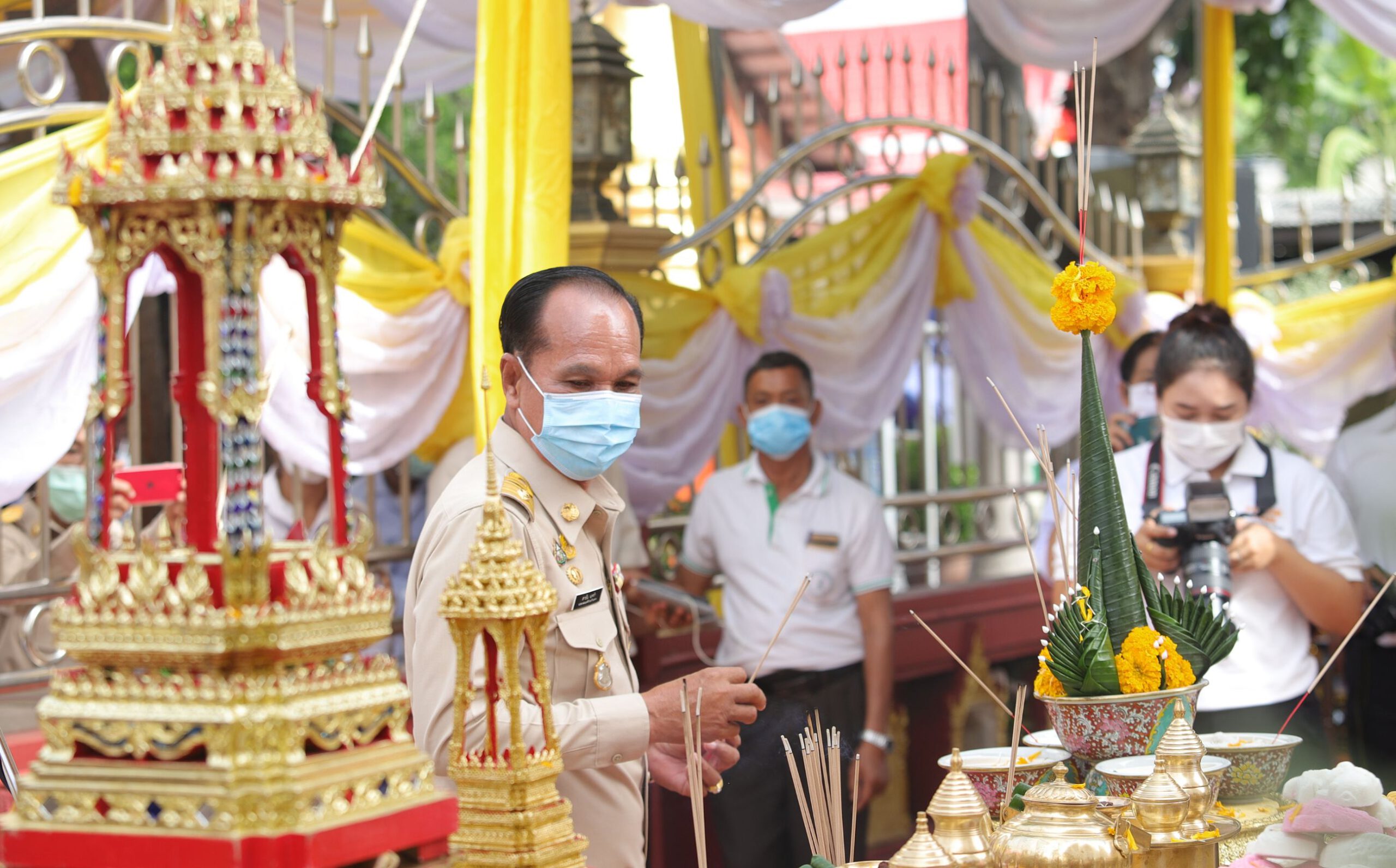 จังหวัดปทุมธานี จัดพิธีบวงสรวงบูรพาจารย์และสิ่งศักดิ์สิทธิ์ ประจำวัดศาลเจ้าในการสร้างครอบน้ำทิพย์พระปทุมธรรมราชและพระปทุมธรรมราช (จำลอง)