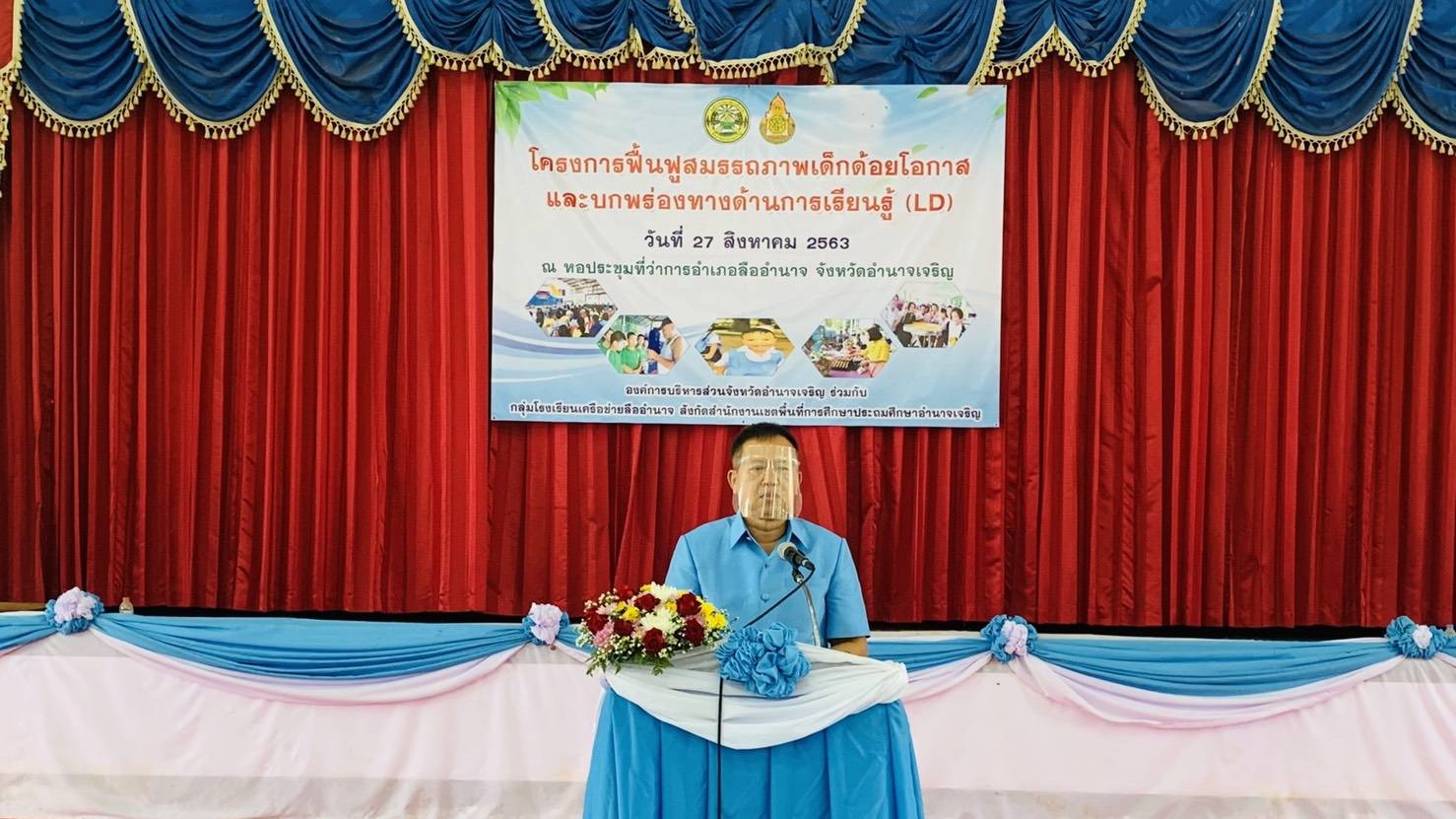 นายธนูศักดิ์ เสมอภาค นายอำเภอลืออำนาจจังหวัดอำนาจเจริญ เป็นประธานอบรมตามโครงการพัฒนาคุณภาพการศึกษาสำหรับนักเรียนที่มีความบกพร่องทางการเรียนรู้ พร้อมบรรยายพิเศษณ.หอประชุมอำเภอลืออำนาจ จังหวัดอำนาจเจริญ