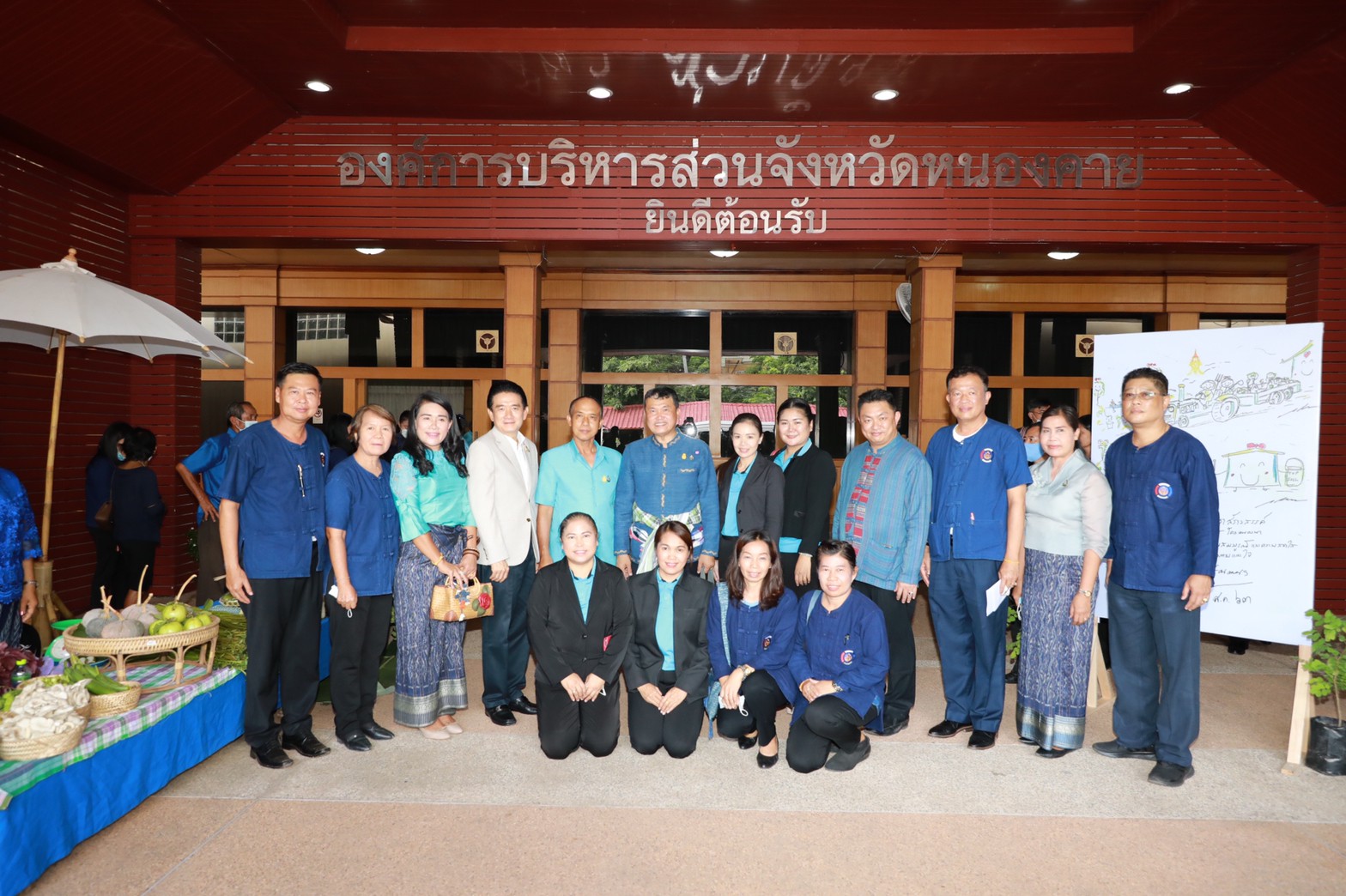 นายสุทธิพงษ์ จุลเจริญ อธิบดีกรมการพัฒนาชุมชน กล่าวว่า วันนี้ดีใจที่ได้มีโอกาสมาเจอชาวหนองคาย ขอบคุณพัฒนาการจังหวัดที่เป็นแรงในการที่จะทำงานร่วมกับผู้ว่าราชการจังหวัด ท่านนายอำเภอ และท่านผู้นำท้องถิ่น ตั้งแต่ท่านนายก อบจ. นายก อบต. ในการที่จะช่วยกันพัฒนาคุณภาพชีวิตให้กับพี่น้องประชาชน ก็กราบเรียนด้วยความเคารพว่ารัฐบาลได้มอบหมายหน้าที่ให้กรมการพัฒนาชุมชนมีหน้าที่ในการจับมือกับทุกภาคีเครือข่ายในทุกจังหวัด ทุกอำเภอ ทุกตำบล ทุกหมู่บ้านในการที่จะช่วยให้พี่น้องประชาชนมีคุณภาพชีวิตที่ดีขึ้น จนกระทั่งมีความสุขอย่างยั่งยืน และส่งเสริมให้กรมการพัฒนาชุมชนเข้าไปช่วยส่งเสริมให้คนมีจิตใจเป็นผู้นำ ในการที่จะเสียสละ ในการที่จะพัฒนาชุมชน พัฒนาครอบครัว ซึ่งวิธีการที่ทำให้เกิดโคกหนองนาพระบาทสมเด็จพระเจ้าอยู่หัว รัชกาลที่ 9 ขอให้พวกเราช่วยเหลือกัน มีความรักความสามัคคีกันช่วยกัน ทำมาหากิน และท่านสอนให้เราแบ่งปันกัน ที่ผมได้นำภาพฝีพระหัตถ์มากราบเรียนพี่ๆน้องๆ