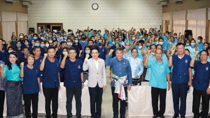 เมื่อวันที่ 27 ส.ค. เวลา 13.30 น. นายสุทธิพงษ์ จุลเจริญ อธิบดีกรมการพัฒนาชุมชน กระทรวงมหาดไทยเดินทางไปยังห้องประชุมร่มไทร องค์การบริหารส่วนจังหวัดหนองคาย อ.เมืองหนองคาย จ.หนองคาย เพื่อมอบนโยบายการขับเคลื่อนการพัฒนาพื้นที่ต้นแบบการพัฒนาคุณภาพชีวิต ตามหลักทฤษฎีใหม่ ประยุกต์สู่ “โคก หนอง นา โมเดล” ให้แก่ ชุมชนต้นแบบ 26 ชุมชน ครัวเรือนต้นแบบ 124 คน และเจ้าหน้าที่พัฒนาชุมชน 20 คน รวม 170 คน โดยมีนายไพโรจน์ โสภาพร พัฒนาการจังหวัดหนองคาย บรรยายสรุปผลการดำเนินงานพัฒนาชุมชนในพื้นที่