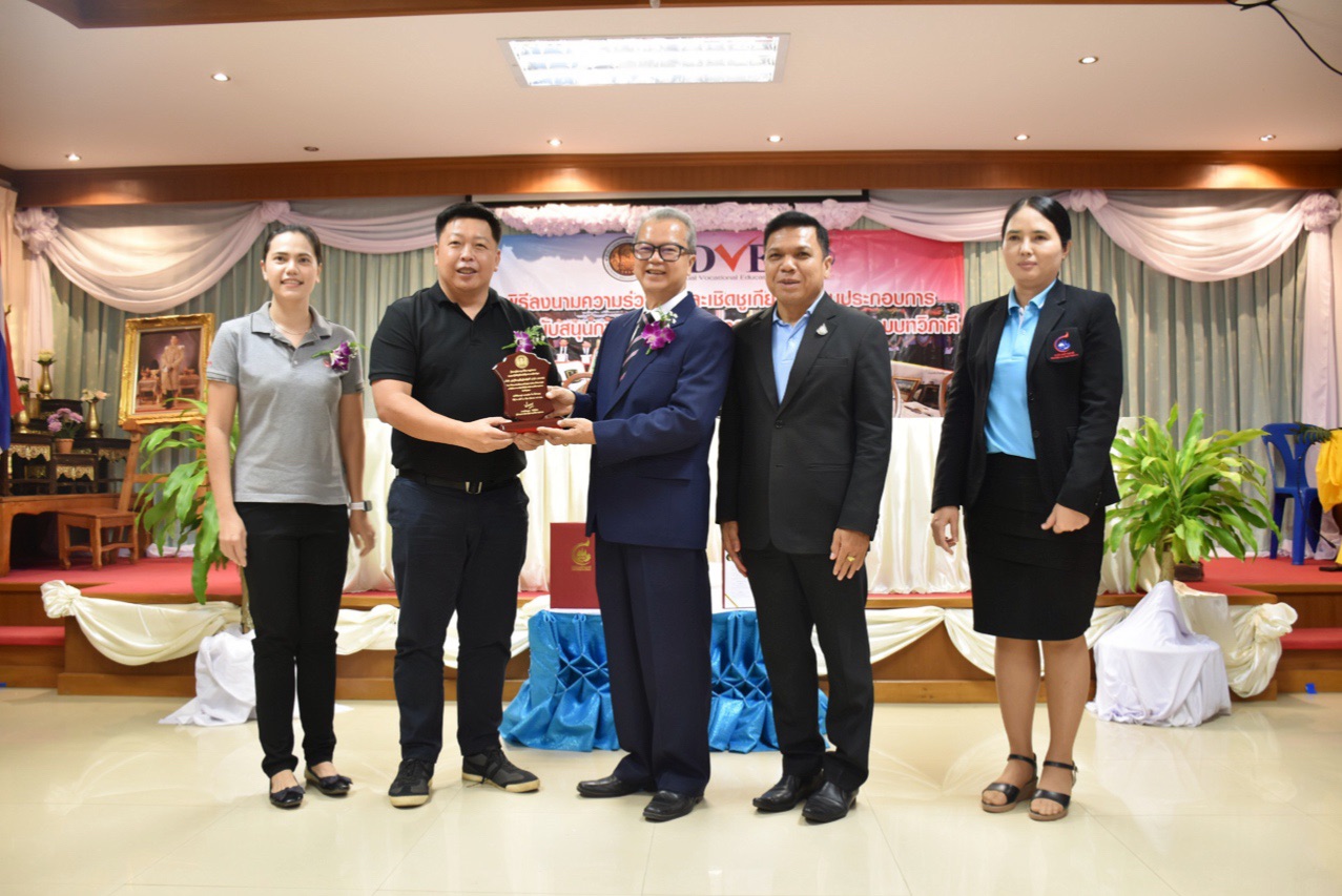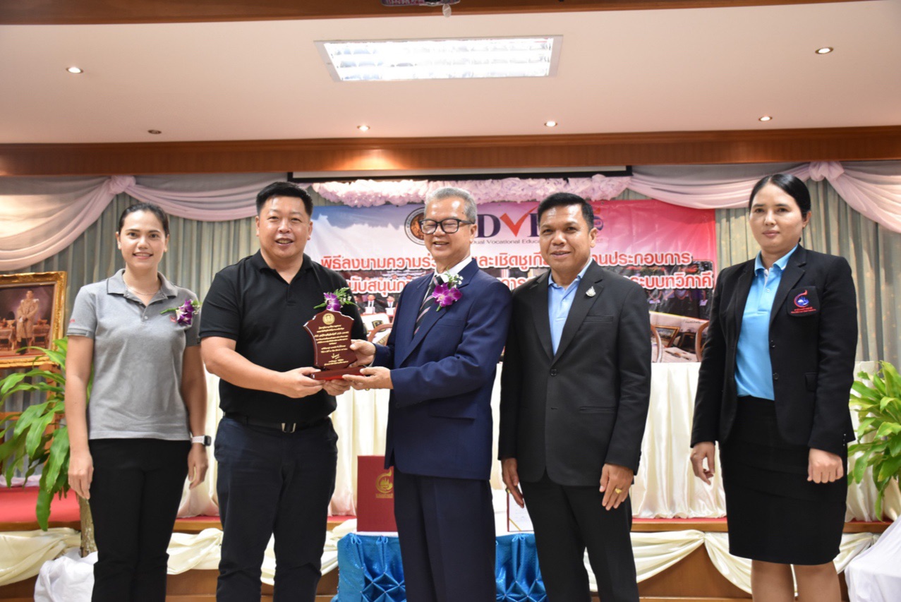กลุ่มเหล็กสหวิริยารับโล่เชิดชูเกียรติองค์กรสนับสนุนการเรียนระบบทวิภาคีจากวิทยาลัยการอาชีพบางสะพาน