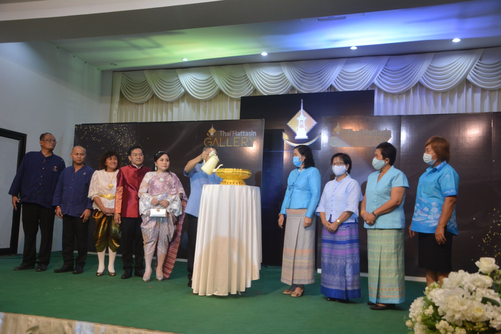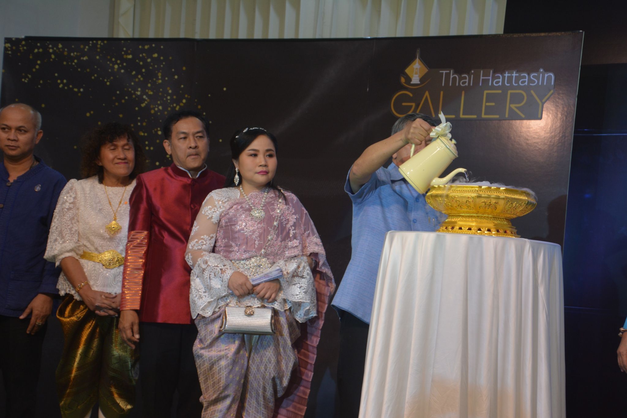 ต่อจากนั้นประธานในพิธีและแขกผู้มีเกียรติเยี่ยมชมผลงานไทยหัตถศิลป์เครื่องทอง THAI HATTASIN GALLERY