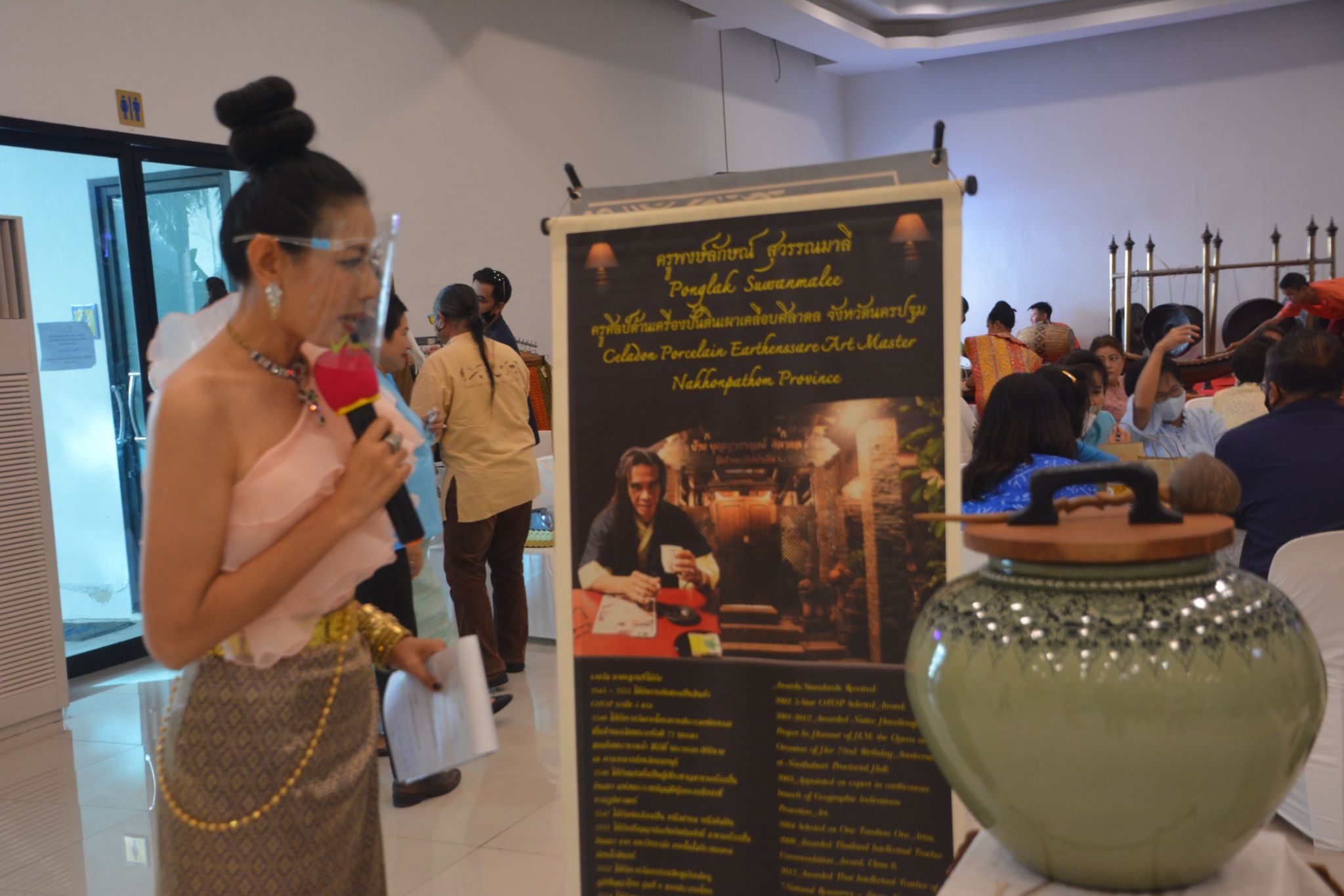 โดยมี นายทรงเกียรติ สว่างแสง ผู้ประกอบการ OTOP ศูนย์การเรียนรู้ไทยหัตถศิลป์เครื่องทอง THAI HATTASIN GALLERY เป็นผู้กล่าวรายงานและวัตถุประสงค์ในการจัดงานในครั้งนี้ ซึ่งมีวัตถุประสงค์เพื่อเป็นศูนย์กลางการเรียนรู้แก่ผู้ที่สนใจศึกษาเรียนรู้งานประดับลายปิดทอง และเก็บรวบรวมสืบสานงานศิลป์ประดับลายปิดทอง ให้คงอยู่คู่กับลูกหลานจากรุ่นสู่รุ่นเพื่ออนุรักษ์ภูมิปัญญาไทยให้ยั่งยืนตลอดไป