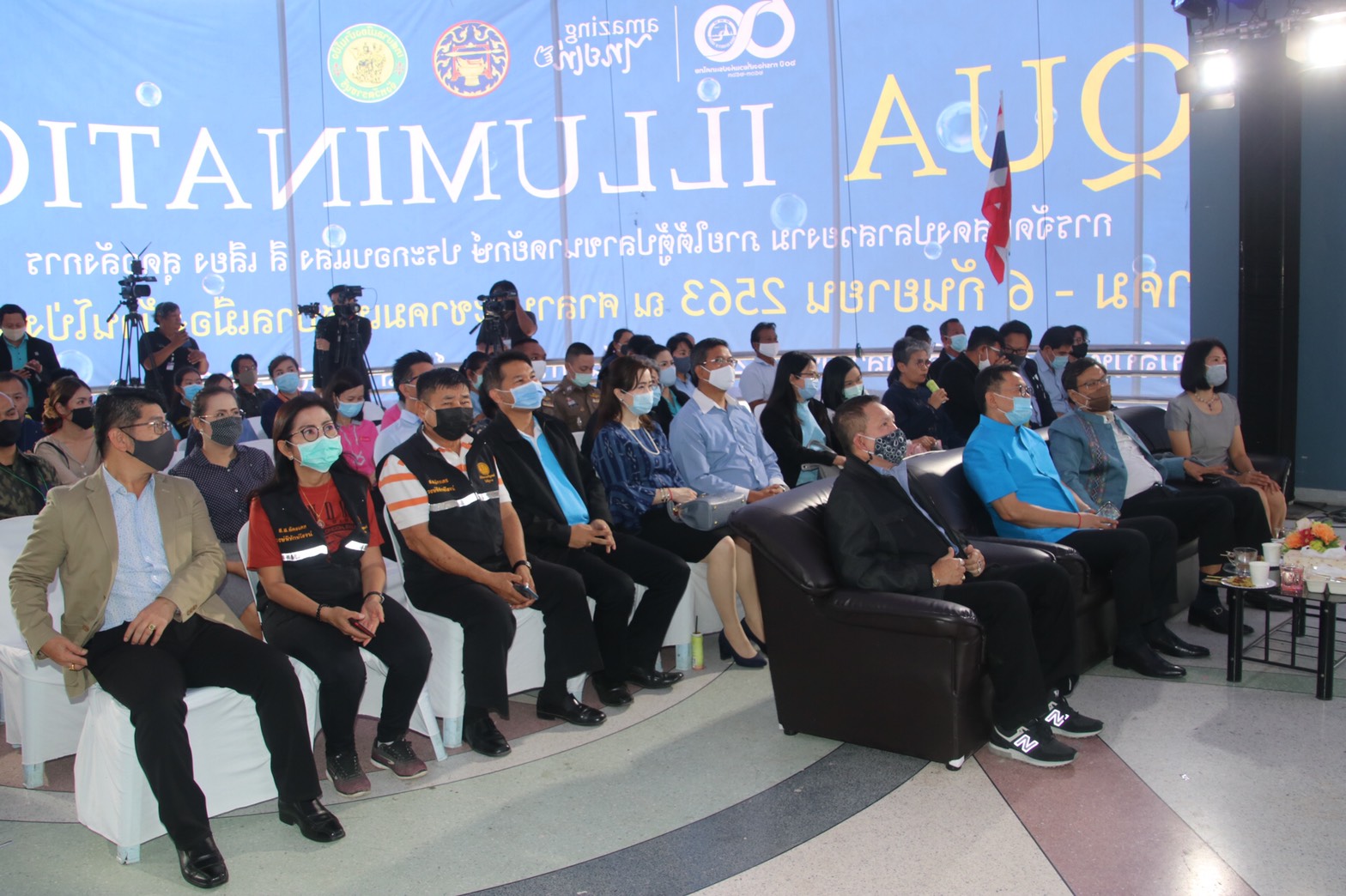 นายนภินทร ศรีสรรพางค์ ผู้ช่วยรัฐมนตรีประจำกระทรวงท่องเที่ยวและกีฬา เป็นประประธานในพิธีพร้อมนายชยาวุธ จันทร ผู้ว่าราชการจังหวัดราชบุรี น.ส.สรียา บุญมาก ผู้อำนวยการ ททท.สำนักงานราชบุรีและนายสุทินโฆษพงศา นายกเทศมนตรีเมืองบ้านโป่ง ร่วมเปิดงาน AQUA ILLUMINATION ที่บริเวณศาลาประชาคมเทศบาลเมืองบ้านโป่ง อ.บ้านโป่ง จ.ราชบุรี เพื่อกระตุ้นการเดินทางท่องเที่ยวของจังหวัดราชบุรี