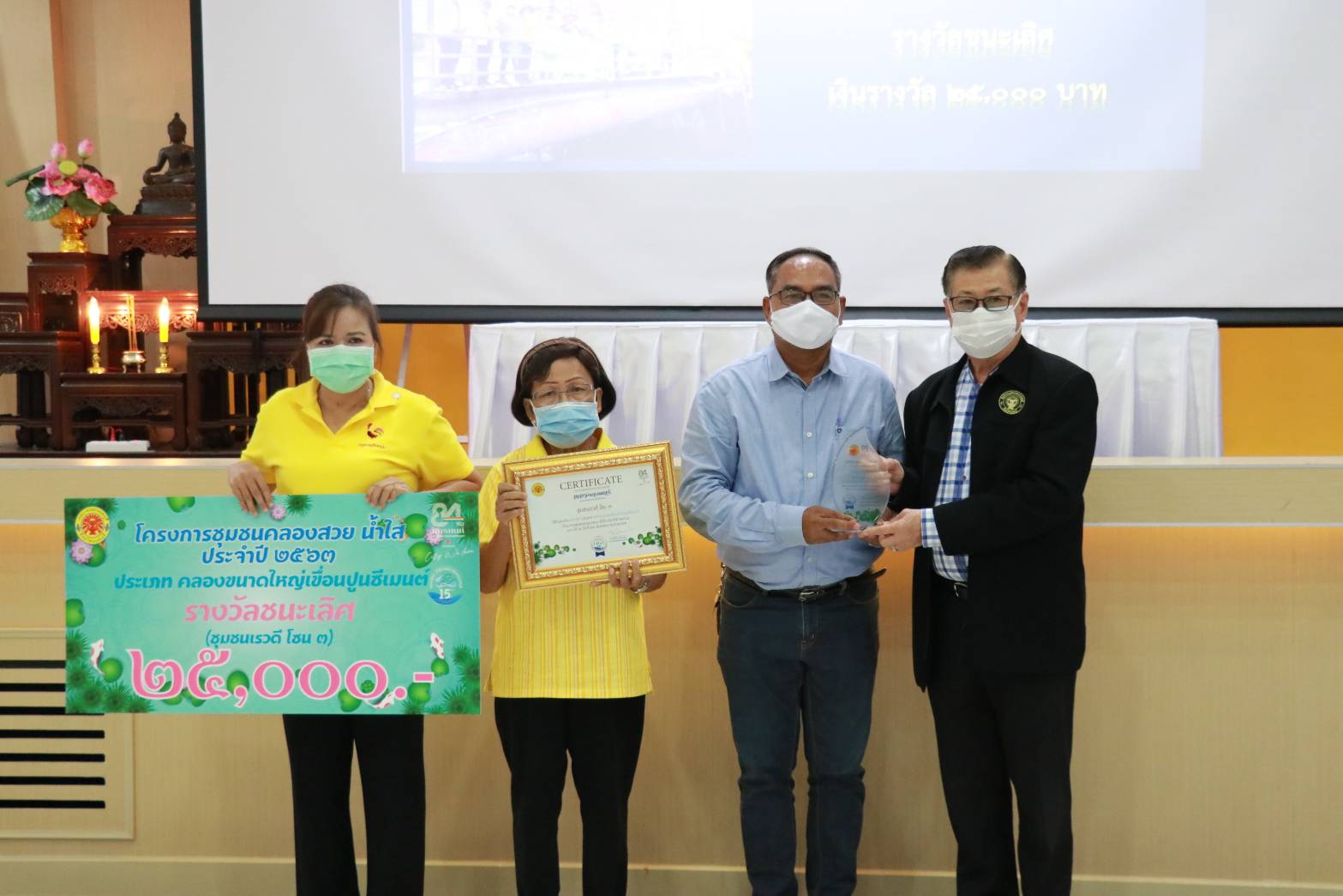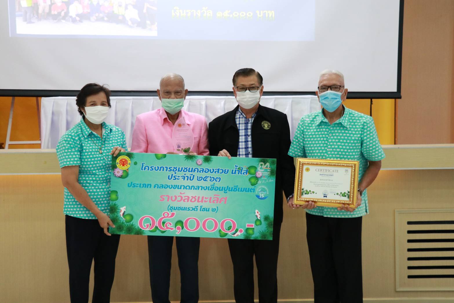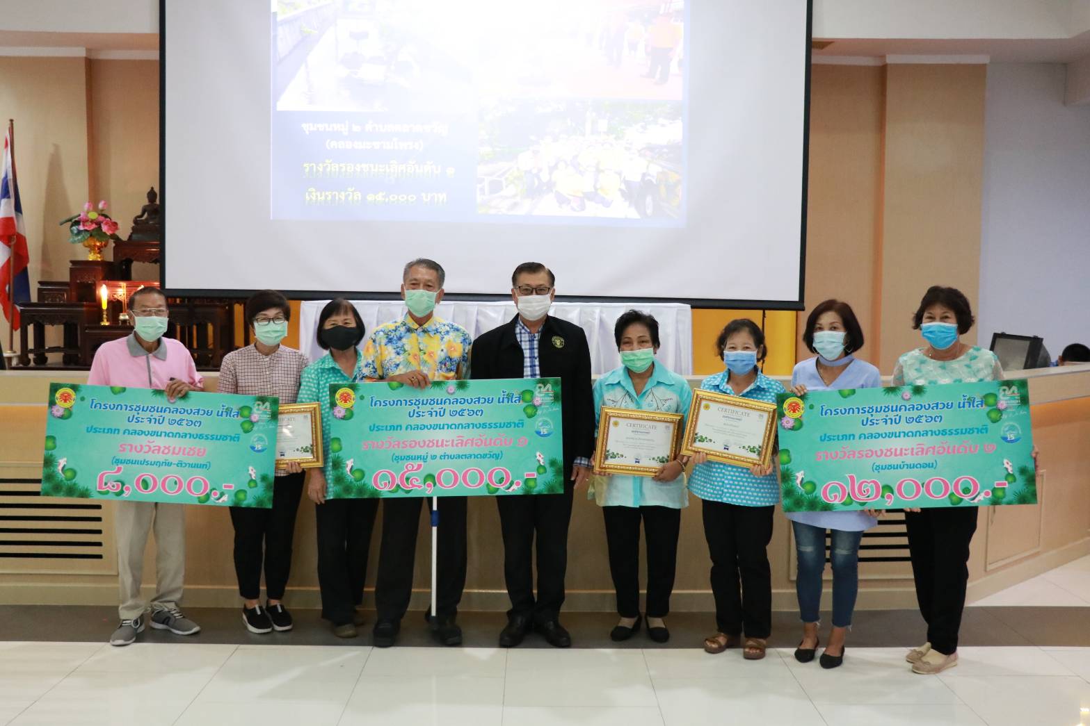 ซึ่งผลการพิจารณาโครงการคลองสวยน้ำใส แบ่งออกเป็น 5 ประเภทได้แก่ 1) ประเภทคลองขนาดเล็ก รางวัลรองชนะเลิศอันดับ 1 ได้แก่ชุมชนรัตนาธิเบศร์ 8-14 ร่วมใจ (ไม่มีชุมชนที่ผ่านเกณฑ์ได้รางวัลชนะเลิศ) 2) ประเภทคลองขนาดกลางเขื่อนปูนซีเมนต์ รางวัลชนะเลิศ ได้แก่ ชุมชนเรวดีโซน 2 3) ประเภทคลองขนาดกลางธรรมชาติ รางวัลรองชนะเลิศอันดับ 1 ได้แก่ ชุมชนหมู่ 2 ตลาดขวัญ (ไม่มีชุมชนที่ผ่านเกณฑ์ได้รางวัลชนะเลิศ 4) ประเภทคลองขนาดใหญ่ปูนซีเมนต์ รางวัลชนะเลิศ ได้แก่ ชุมชนเรวดีโซน 3 5) ประเภทคลองขนาดใหญ่ธรรมชาติ รางวัลชนะเลิศ ได้แก่ ชุมชนวัดทางหลวง ได้รับความอนุเคราะห์วิทยากรจากสำนักงานสิ่งแวดล้อมภาคที่ 6 และผู้แทนจากโครงการชลประทานนนทบุรี มาบรรยายให้ความรู้ในครั้งนี้