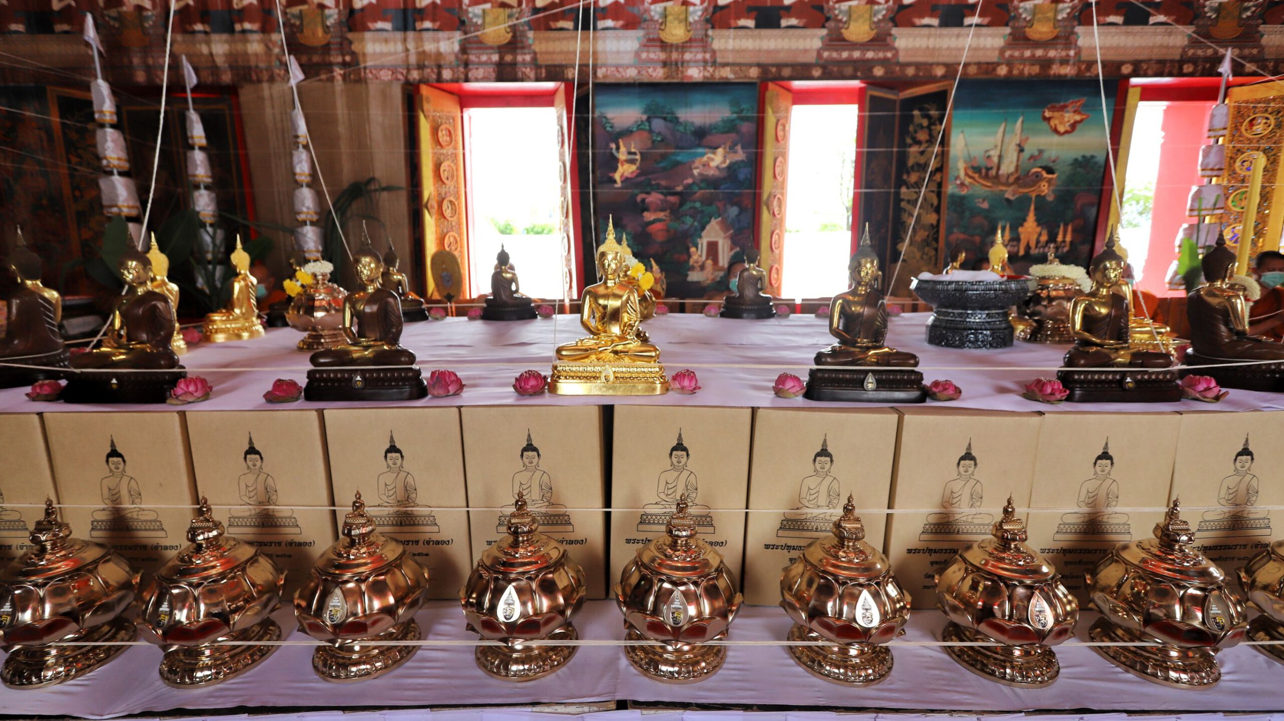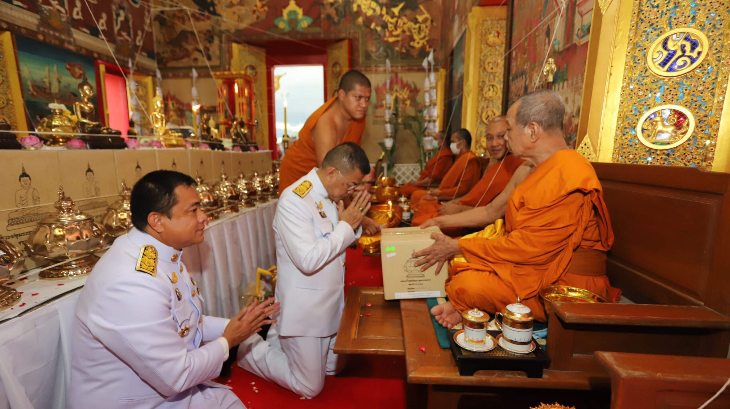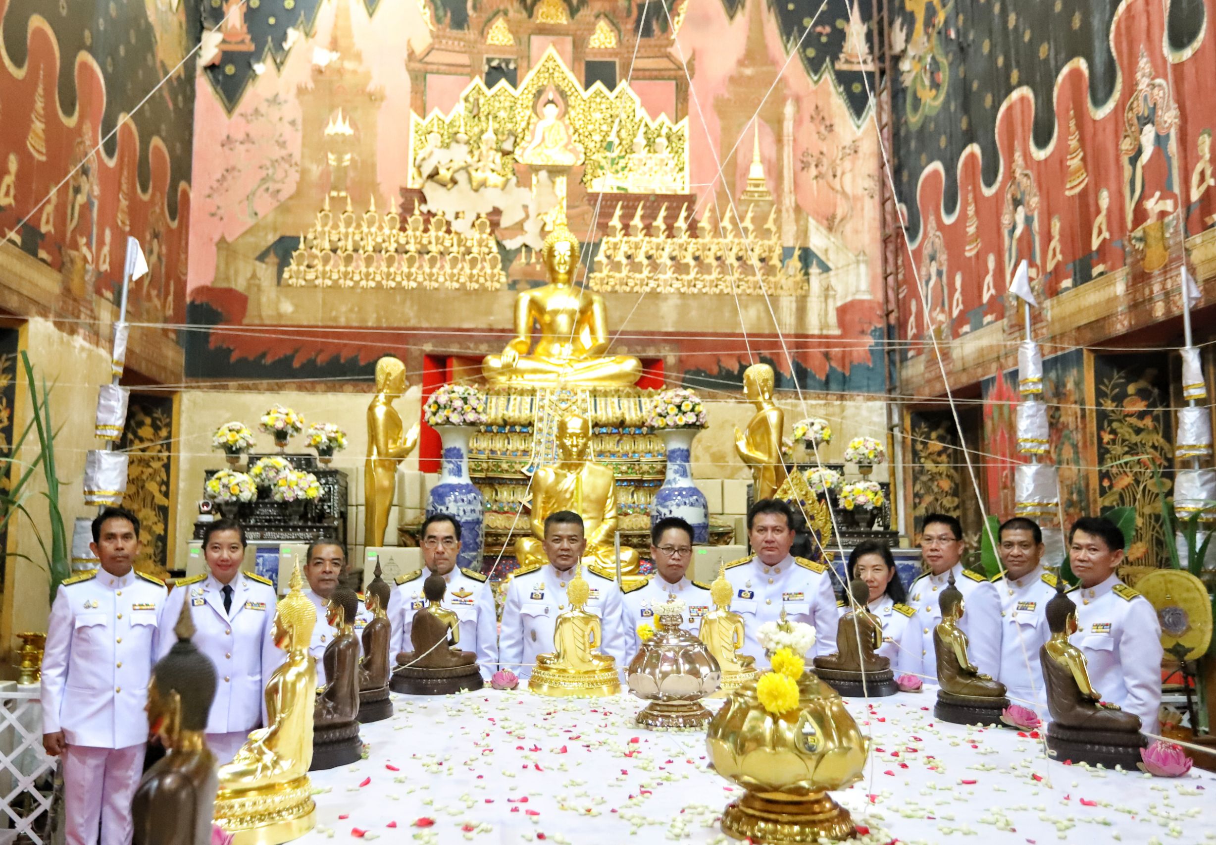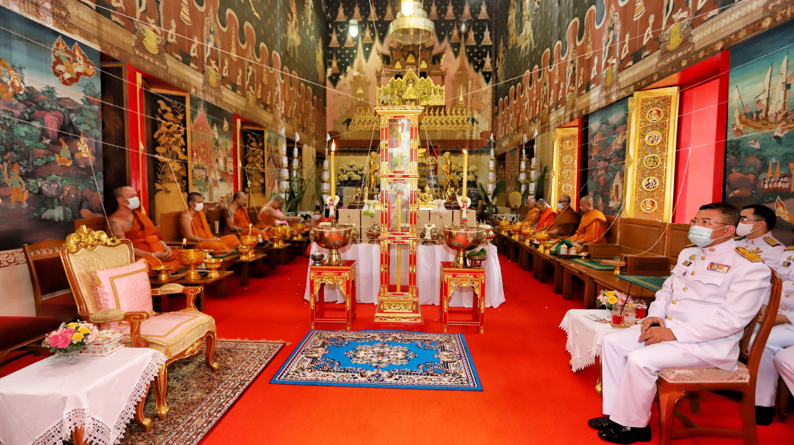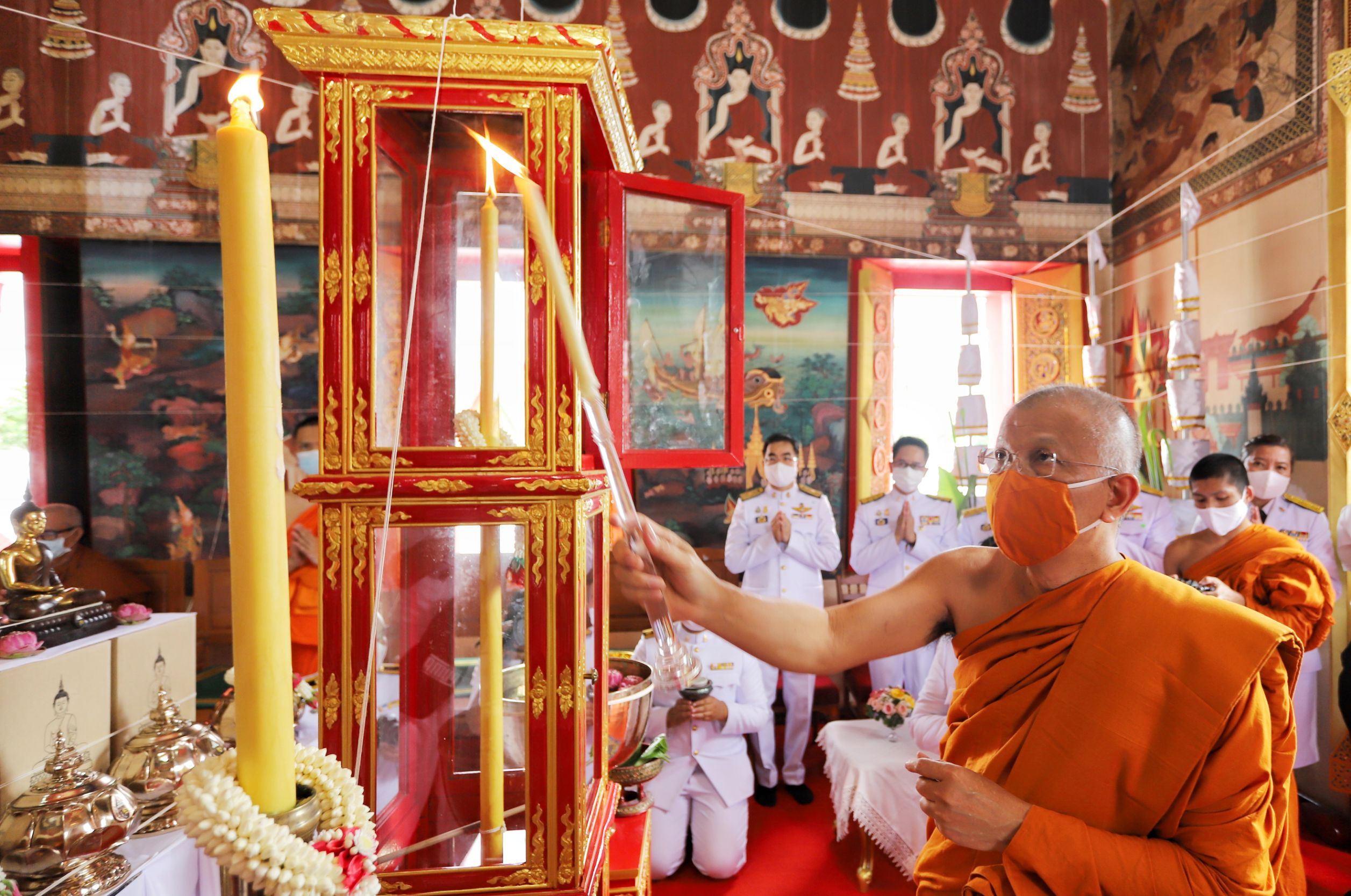 โดยมี พระมงคลวโรปการเจ้าอาวาสวัดชินวรารามวรวิหาร พระครูสมุห์วัชระ ภทฺทธมฺโม (พระครูต้น) ผู้ช่วยเจ้าอาวาสวัดระฆังโฆสิตาราม ดร.พินิจ บุญเลิศ ผู้ว่าราชการจังหวัดปทุมธานี นายกิตติพงศ์ ทองปุย ผู้พิพากษาหัวหน้าศาลจังหวัดปทุมธานี นายวิเชียร พัชรธรรมพันธุ์ อัยการจังหวัดปทุมธานีนายชาธิป รุจนเสรี รองผู้ว่าราชการจังหวัดปทุมธานี นายอาวุธ วิเชียรฉาย นายอำเภอเมืองปทุมธานี นายพิษณุ ประภาธนานันท์ นายอำเภอธัญบุรี นางสาวธนียา นัยพินิจ หัวหน้าสํานักงานจังหวัดปทุมธานี นางสาวฐิต์ณัฐ สมบัติศิริ วัฒนธรรมจังหวัดปทุมธานี หัวหน้าส่วนราชการ ข้าราชการ-ทหาร-ตำรวจ-ประชาชน ชาวจังหวัดปทุมธานี ร่วมกันประกอบพิธี ณ วัดชินวรารามวรวิหาร(พระอารามหลวง)