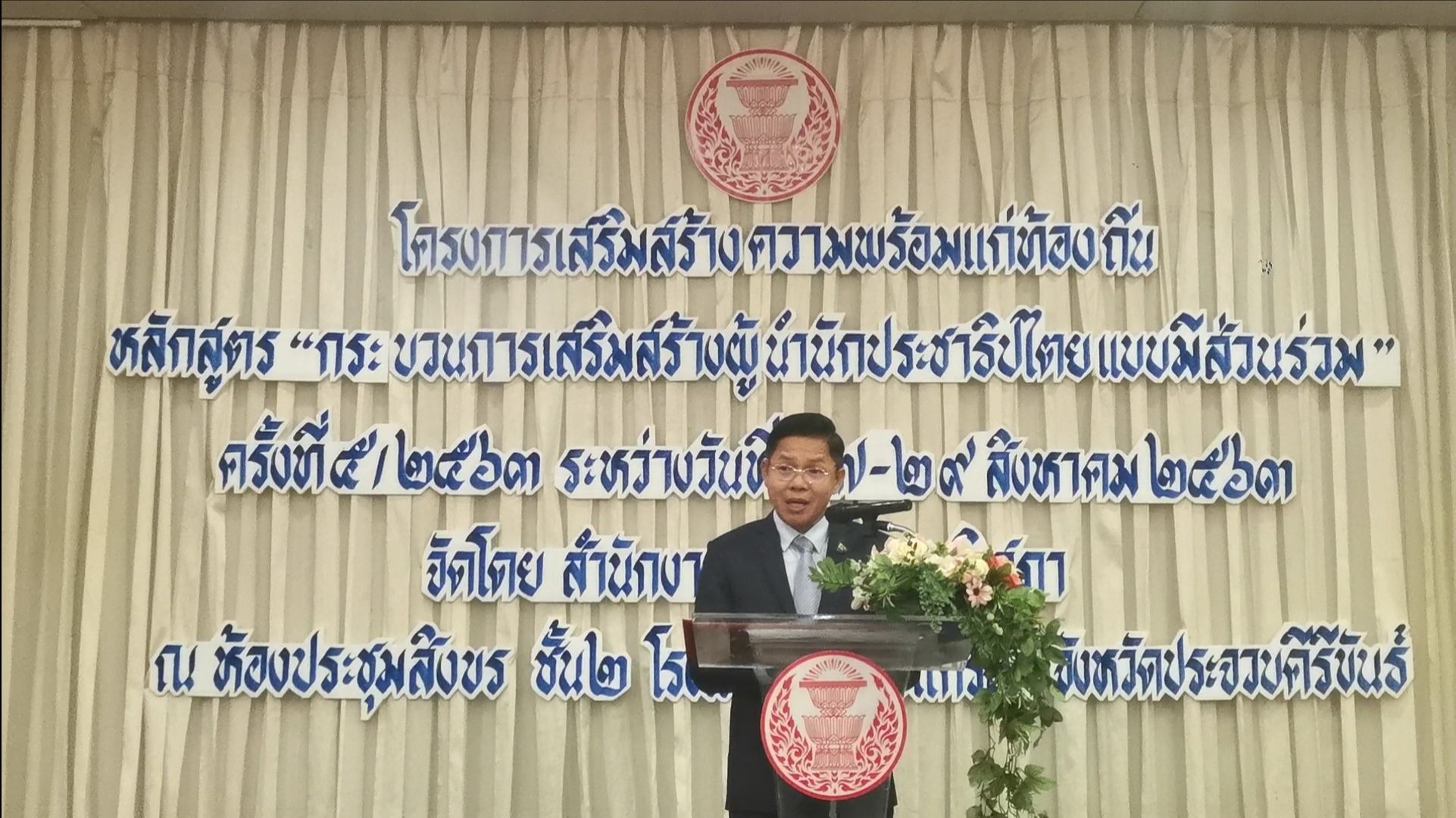 วันที่ 29 ส.ค. 63 ที่โรงแรมประจวบแกรนด์ อำเภอเมือง จังหวัดประจวบคีรีขันธ์ นายประดิษฐ์ เหลืองอร่าม สมาชิกวุฒิสภา ได้เป็นประธานมอบใบสัมฤทธิบัตร ผู้สำเร็จการฝึกอบรมโครงการเสริมสร้างความพร้อมแก่ท้องถิ่น หลักสูตร “กระบวนการเสริมสร้างผู้นำนักประชาธิปไตยแบบมีส่วนร่วม” ประจำปีงบประมาณ พ.ศ.2563 ของสำงานเลขาธิการวุฒิสภา จำนวน 3 จังหวัด ประกอบไปด้วย เพชรบุรี ประจวบคีรีขันธ์ ชุมพร จำนวน 60 คน