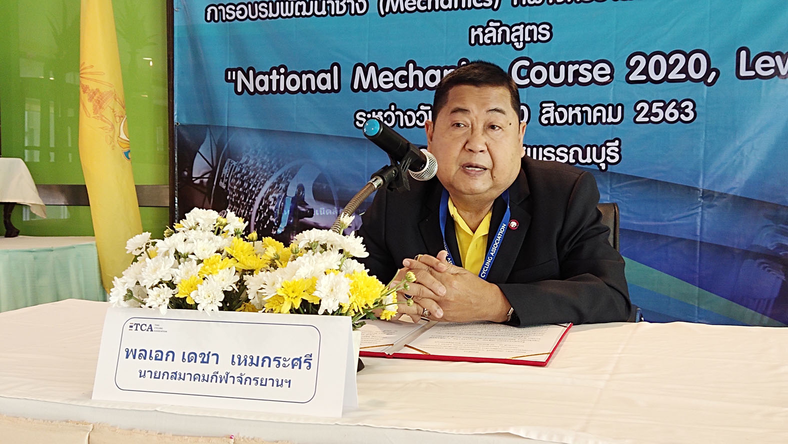 พลเอก เดชา เหมกระศรี นายกสมาคมกีฬาจักรยาน แห่งประเทศไทยฯ เปิดเผยว่าช่างเดี๋ยวนี้หายากเราจึงได้เปิดหลักสูตรช่างขึ้นส่วนโค้ชนั้นทุกโค้ชเปิดทุกปี ดังนั้นขอให้เตรียมตัวไว้ใครที่จบการอบรมหลักสูตรช่างแล้วและใครที่ทำทีมอยู่ก็ให้สมัคร สำหรับโครงการอบรมพัฒนาช่าง (Mechanics) กีฬาจักรยานประเภทถนน หลักสูตร ” National echanicsCourse 2020, Level 1″ที่จัดขึ้นนั้นมีวัตถุประสงค์เพื่อต้องการให้คนที่อยากได้และตั้งใจมาเรียนโดยไม่หนีไปไหน การอบรมที่ผ่านมาส่วนมากผู้ที่สมัครจะเป็นผู้บริหารท้องถิ่นไม่ทำงานเกเร ถูกส่งมาพอถึงเวลาอบรมก็จะเซ็นชื่อแล้วอ้างมีราชการ ต้องไปประชุมแล้วหายไปพอเช้าก็มาใหม่ แบบนี้เราไม่เอาจึงต้องส่งตัวกลับแต่ถ้าคนที่สมัครมีความสนใจและตั้งใจมารับเอาความรู้จะได้ประโยชน์เยอะเนื่องจากเราได้ งบประมาณที่จัดอบรมที่มาจากภาษีอากรของประชาชนจัดหาจัดวิทยากรชั้นนำมาให้ความรู้อย่างเต็มที่ เราต้องใช้ให้คุ้มค่าไม่ใช่เอาเงินภาษีเขามาเผาผลาญไม่ได้เราต้องซื่อสัตย์สุจริตและได้ความรู้กลับไปพัฒนาให้ดียิ่งๆขึ้นและสามารถนำประกาศนียบัตรที่ผ่านการอบรม เป็นใบรับรองไปประกอบอาชีพหากินได้ ขอให้ผู้เข้ารับการอบรมครั้งจงภูมิใจว่านี่เป็นหลักสูตรแรกในประวัติศาสตร์ของเทศไทย
