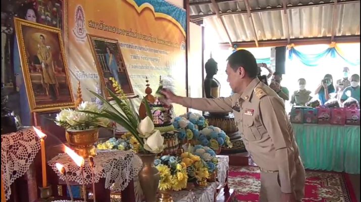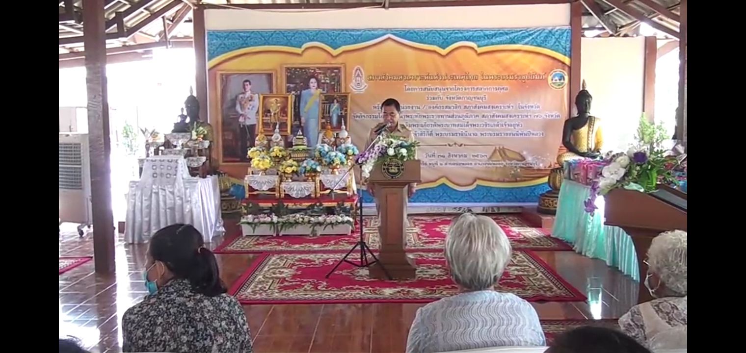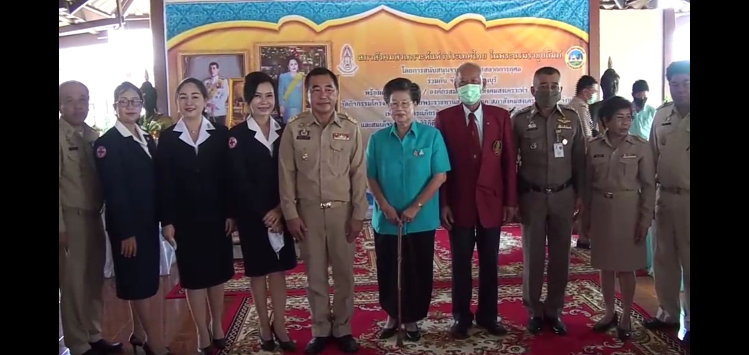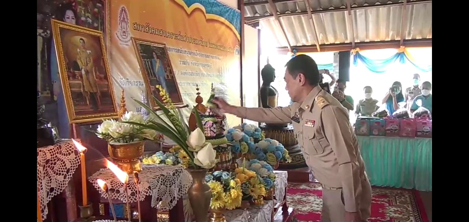 ต่อจากนั้น นายจีระเกียรติ ภูมิสวัสดิ์ ผู้ว่าราชการจังหวัดกาญจนบุรี ได้เป็นประธาน จุดเทียน พร้อม เปิดกรวยแสดงความจงรักภักดี เบื้องหน้าพระบรมฉายาลักษณ์ พระบาทสมเด็จพระวชิรเกล้าเจ้าอยู่หัว และสมเด็จพระนางเจ้าสิริกิติ์ พระบรมราชินีนาถ พระบรมราชชนนีพันปีหลวงและร่วมร้องเพลงสรรเสริญพระบารมีหลังจาปนั้น นายแสวง เอี่ยมองค์ ประธานกรรมการประสานงานส่วนภูมิภาคสภาสงเคราะห์แห่งประเทศไทย ได้กล่าวต้อนรับและกล่าววัตถุประสงค์ ในการจัดกิจกรรม โครงการน้ำพระทัยพระราชทานส่วนภูมิภาคสภาสังคมสงเคราะห์ 76 จังหวัดประจำปี 2563ให้ ประธานในพิธี และแขกผู้มีเกียรติที่เดินทางมาร่วมกิจกรรมดังกล่าวว่า ด้วยวันที่ 20 พฤษภาคม 2541 สมเด็จพระนางเจ้าสิริกิติ์ พระบรมราชินีนาถ พระบรมราชชนนีพันปีหลวง ทรงพระกรุณาโปรดเกล้าให้ศาสดาจารย์ประภาศน์ อวยชัย ประธานสภาสังคมสงเคราะห์ ฯ ในขณะนั้น นำคณะกรรมการอำนวยการสภาสังคมสงเคราะห์ เข้าเฝ้าทูลเกล้าถวายเงินรายได้จากการจำหน่ายดอกมะลิงานวันแม่แห่งชาติ จำนวน 2 ล้านบาท และทรงพระกรุณาโปรดเกล้าพระราชทานเงิน จำนวน ดังกล่าวคืนให้สภาสังคมสงเคราะห์ พร้อมทั้งได้มีพระราชเสาวนีย์ให้จัดตั้งกองทุนอาหารกลางวันเลี้ยงผู้ตกงาน ผู้ประสบความทุกข์ยากเดือดร้อน รวมทั้งครอบครัวในภาวะวิกฤต สภาสังคมสงเคราะห์ ได้น้อมเกล้าฯรับพระราช เสาวนีย์มาดำเนิน ก้านตั้งแต่วันที่ 25 พฤษภาคม 2541 เป็นต้นมาจนถึงปัจจุบันตลอดเวลา 22 ปี พระบาทสมเด็จพระชนกาธิเบศรมหาภูมิพลอดุลยเดชมหาราช พระบรมนาถพิตร และ สมเด็จพระนางเจ้าสิริกิติ์ พระบรมราชินีนาถ พระบรมราชชนนีพันปีหลวง ทรงพระกรุณาโปรดเกล้าพระราชทานเงินส่วนพระองค์จำนวน 15 ล้านบาทสนับสนุนโครงการ และทรงพระกรุณาให้ราชเลขานุการในพระองค์ เยี่ยมเยียนโครงการอย่างสม่ำเสมอ รวมทั้งพระบรมวงศานุวงศ์ยางได้พระราชทานเครื่องอุปโภคบริโภคให้โครงการตลอดมาเช่นกันนับเป็นพระมหากรุณาธิคุณผู้ประสบปัญหาความทุกข์ยากเดือดร้อนอย่างหาที่สุดมิได้