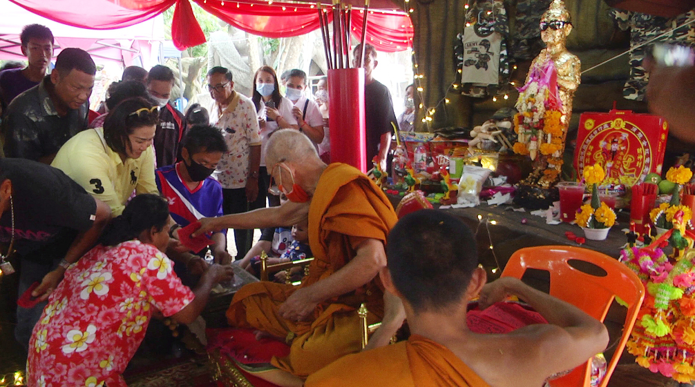 สุพรรณบุรี คอหวยแห่ขอเลขเด็ดไอ้ไข่วัดไผ่แขกแน่นวัด