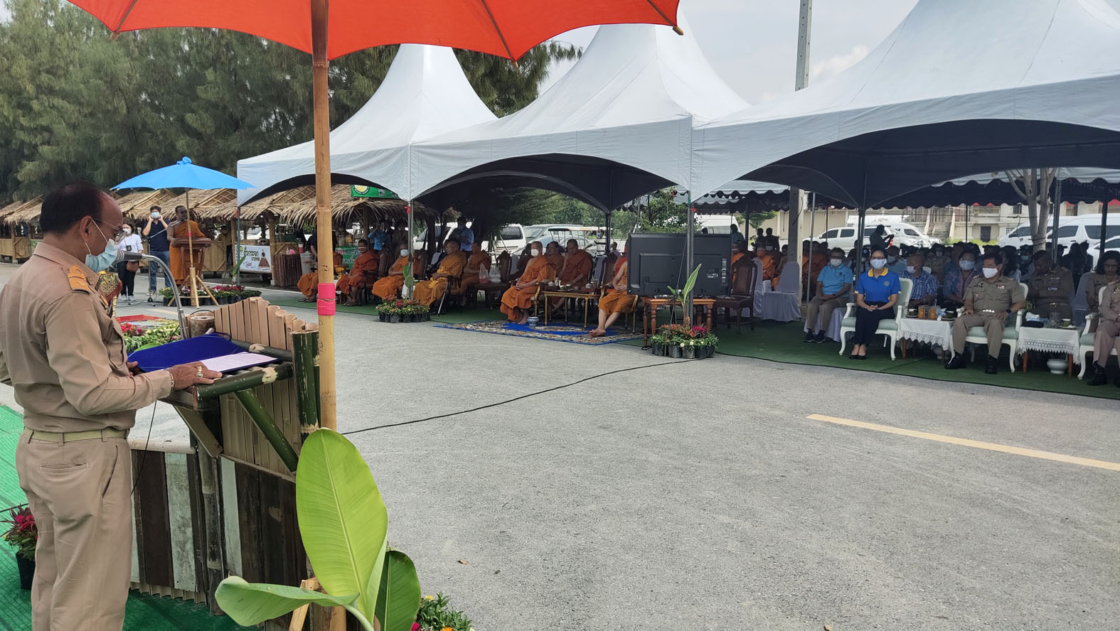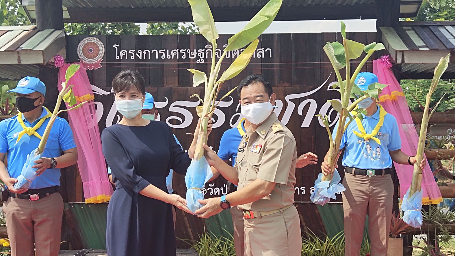 จากนั้นผู้ว่าราชการจังหวัดสุพรรณบุรี ได้ปลูกพันธุ์กล้วย และชมผลิตภัณฑ์สินค้าชุมชน เช่นการแปลรูปกาบกล้วยใบกล้วย ใบยอมาทำเป็นถ้วย ชาม เพื่อรักษาสิ่งแวดล้อม ปล่อยพันธุ์ปลา นั่งเรือชมสวนกล้วยและพันธุ์กล้วยที่หาดูได้ยาก ก่อนจะนั่งพักชมการแสดงดนตรีไทยและการขับร้องเพลงสวนกล้วยของนักเรียนอนุบาลวัดป่าเลไลยก์ ที่บริเวณศาลท่าน้ำ