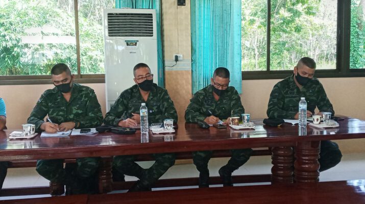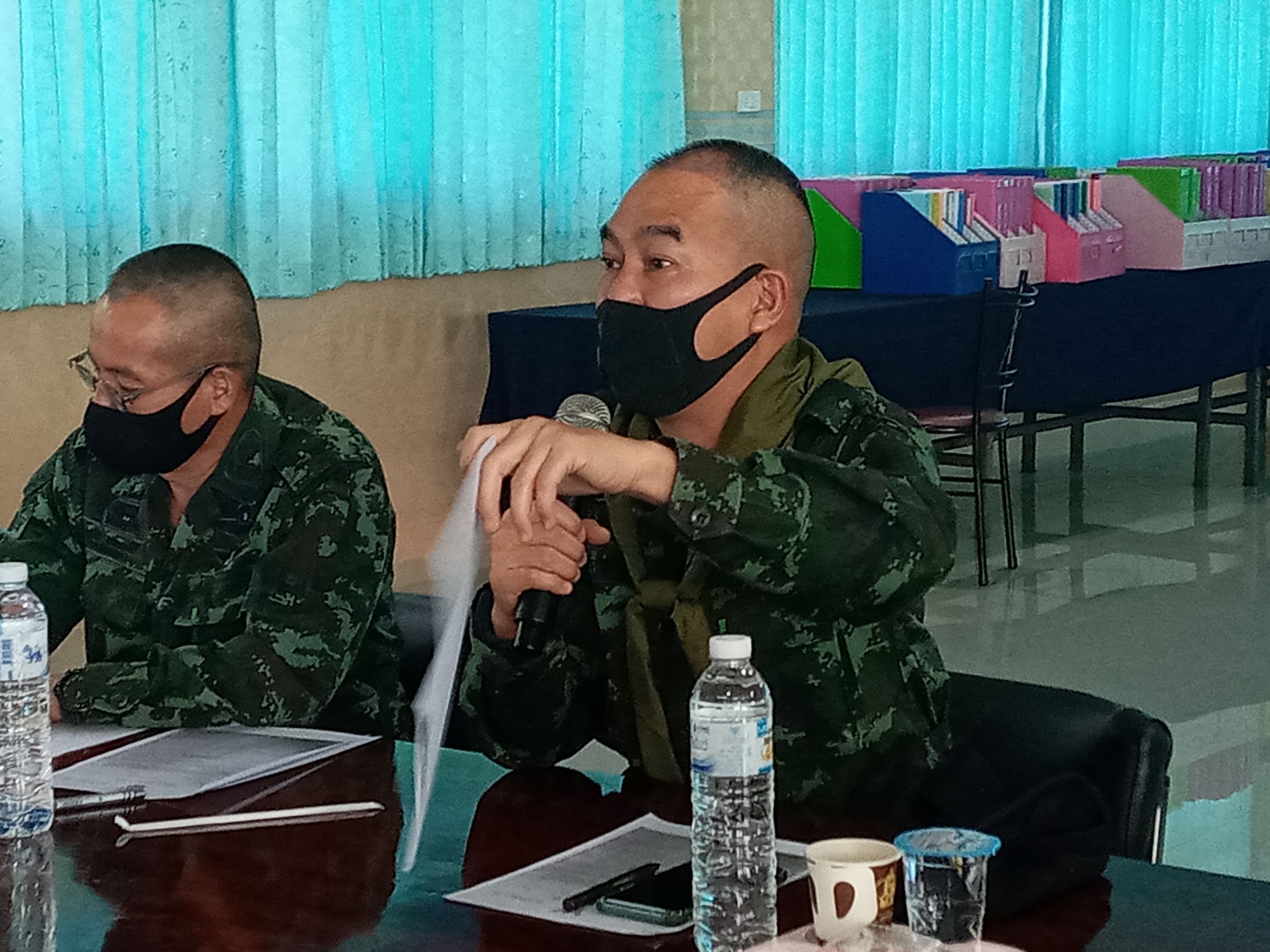 ที่บริเวณห้องประชุมโรงเรียนบ้านกุยแหย่ ตำบลลิ่ถิ่น อำเภอทองผาภูมิ จังหวัดกาญจนบุรี พลตรีฐกัด หลอดศิริ ผู้บัญชาการกองพลทหารราบที่ 9 ผู้บัญชาการกองกำลังสุรสีห์ ร่วมประชุมหารือกับผู้แทนหน่วยงานทหาร ตำรวจ สาธารณสุข กำนัน ผู้ใหญ่บ้าน คณะครู ผู้อำนวยการโรงเรียนบ้านกุยแหย่ กำนัน ผู้ใหญ่บ้านในพื้นที่ เพื่อร่วมกันหาแนวทางพร้อมถอดบทเรียนจากเหตุการณ์ ที่มีชายชาวเมียนมาร์ 2 คน เข้ามาอาศัยอยู่ในพื้นที่อำเภอทองผาภูมิอย่างผิดกฎหมาย และเกิดมีไข้สูง จนต้องสงสัยว่าอาจจะติดเชื้อไวรัสโคโรนา2019 ทำให้ทางโรงเรียนบ้านกุยแหย่ ต้องสั่งปิดการเรียนการสอนเป็นเวลา 3 วัน