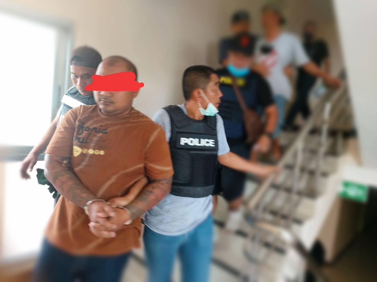 จึงได้รายงานให้ผู้บังคับบัญชาทราบและได้รับคำสั่งให้วางแผนจับกุมตามวันเวลาและสถานที่จับกุมตัว จึงได้รายงานให้ผู้บังคับบัญชาทราบ และได้รับคำสั่งให้วางแผนจับกุมตัวตามวันเวลา และสถานที่จับกุมพบผู้ต้องหานี้ยืนอยู่เมื่อเห็นเจ้าหน้าที่ตำรวจชุดจับกุมพยานจะหลบหนีแต่สามารถควบคุมตัวไว้ได้จึงได้แสดงหมายจับดังกล่าวข้างต้น ให้ผู้ต้องหานี้ดูแล้วรับว่าเป็นบุคคลตามหมายจับนี้จริง จึงได้แจ้งข้อกล่าวหาตามหมายจับดังกล่าวข้างต้น ผู้ต้องหาให้การรับสารภาพตลอดข้อกล่าวหาตามวันเวลาเกิดเหตุและสถานที่เกิดเหตุได้ร่วมกับนายสมศักดิ์หรือคิง หรือปีเตอร์ นายพงษ์ศักดิ์หรือคิวฯ นายธวัฒน์ หรือฟลุ๊ค ฯ น.ส.รัชนีฯ นายทัศไนยหรือแอมป์ นายปิติวัฒน์หรือต้นและนายภูตะวันหรือเล็ก นพประดับ ร่วมกันก่อเหตุปล้นทรัพย์ตามวันเวลาเกิดเหตุจริง ทั้งนี้ในชั้นจับกุมผู้ต้องหานี้ ได้เขียนบันทึกเล่าเรื่องราวที่เกิดขึ้นในครั้งนี้ไว้เป็นหลักฐานพร้อมชี้ภาพบุคคลที่ร่วมกันกระทำผิดประกอบการจับกุมในครั้งนี้แล้วจึงจับกุมตัวผู้ต้องหา ผู้ถูกจับทราบข้อกล่าวหารายละเอียดเกี่ยวกับเหตุแห่งการจับและสิทธิของผู้ถูกจับดังกล่าวข้างต้นแล้วผู้ถูกจับทราบข้อกล่าวหาและสิทธิของผู้ถูกจับดังกล่าวข้างต้นแล้ว ขอให้การรับสารภาพตลอดข้อกล่าวหาว่าตามวันเวลาเกิดเหตุและสถานที่เกิดเหตุได้ร่วมกับนายสมศักดิ์หรือคิงหรือปีเตอร์นายพงษ์ศักดิ์หรือคิวนายธนวัฒน์หรือฟลุ๊ค์ น.ส.รัชนี นายปิติวัฒน์หรือต้นนายทัศนัยแอมและนายภูตะวันหรือเล็ก นพประดับ ร่วมกันก่อเหตุปล้นทรัพย์ตามเวลาเกิดเหตุจริง โดยชั้นจับกุมผู้ต้องหาได้เขียนเล่าเรื่องราวที่เกิดขึ้นต่อเจ้าหน้าที่ชุดจับกุมไว้เป็นหลักฐานซึ่งผู้ต้องหาเขียนด้วยความสมัครใจโดยไม่มีผู้ใดบังคับหลอกหลงหรือให้สัญญาที่ให้ผู้ต้องหาเขียนบันทึกเล่าเรื่องราวในครั้งนี้ พร้อมผู้ต้องหาได้ชี้รูปบุคคลที่เกี่ยวข้องที่ร่วมก่อเหตุในครั้งนี้ไว้เป็นหลักฐานแล้ว